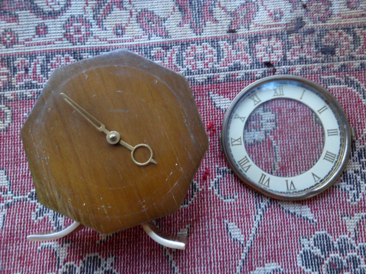 Разгребаю балкон, нашел советские настольные часы. Так как не люблю слушать тикание дома, то там и оказались. Ходят исправно. Отвалился циферблат со стеклом, он крепился на гвоздиках, один гвоздик сохранился ). Есть вмятинка на ободке стекла.