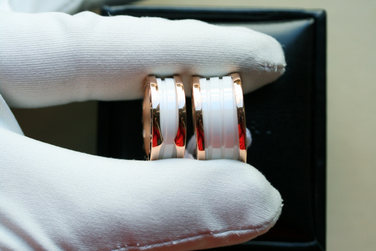<<< [ОБНОВЛЕННОЕ женское кольцо] BVLGARI B.ZERO * розовое золото * белая керамика >>>