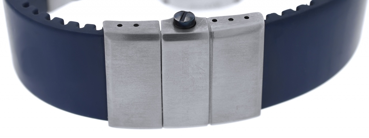 Диаметр 41.00 мм Корпус Корпус из нержавеющей стали Циферблат Синий циферблат Запас хода Ок. 42 часа Завод Автоподзавод Водонепроницаемость до 100 метров Стекло Сапфировое стекло Ремешок Каучуковый ремешок с титановыми вставками Тип застежки Раскладывающаяся застежка