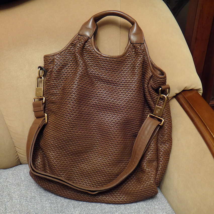 Сумка полностью из плетеной мягкой кожи наппа орехового коричневого цвета. Ручная работа, ручное плетение!