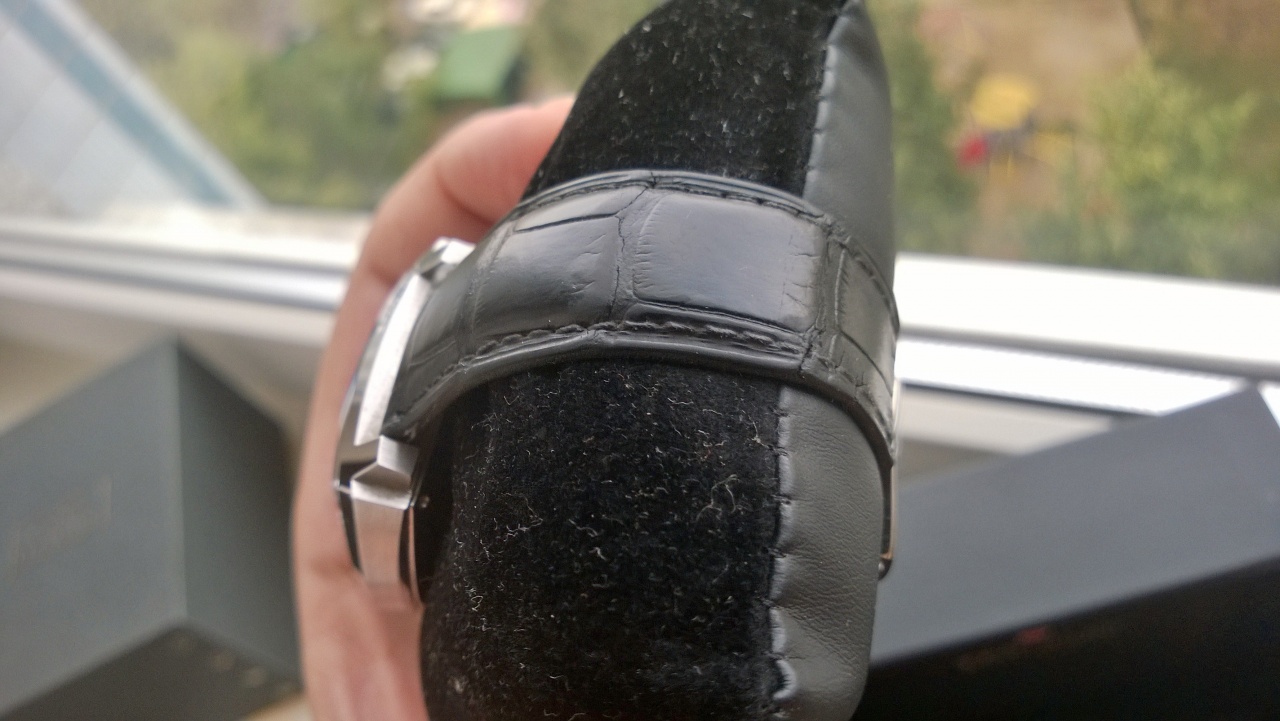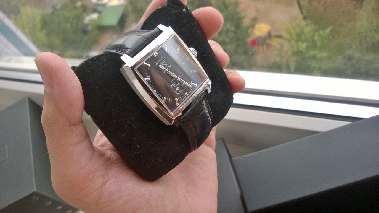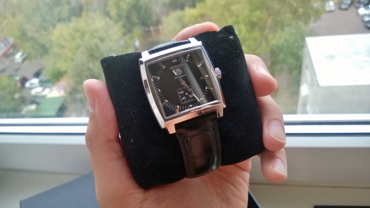 Автоматический механизм, калибр Calibre 6. Индикация числа. Маленькая секундная стрелка. Оформление циферблата - ручная работа. Надпись Monaco - белый лак. Часовая, минутная и секундная стрелка покрыты никелем. Прозрачная задняя крышка. Черный ремешок из крокодиловой кожи. Водозащита WR 50. Сапфировое стекло с двусторонним антибликовым покрытием.