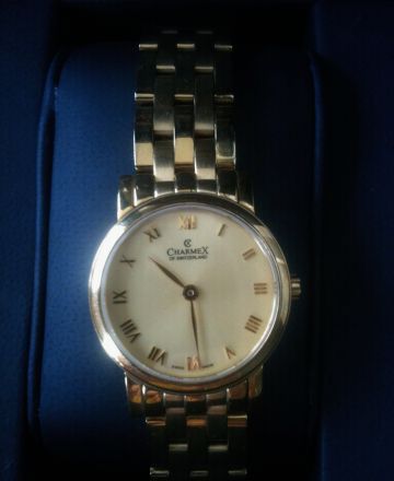 Циферблат золотистый. Браслет из нержавеющей стали с позолотой.