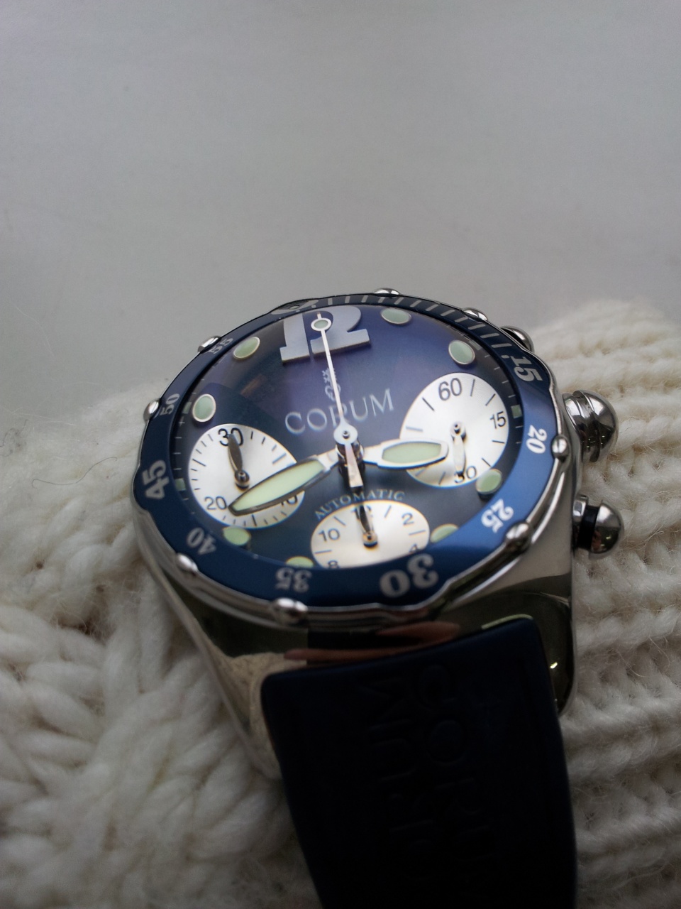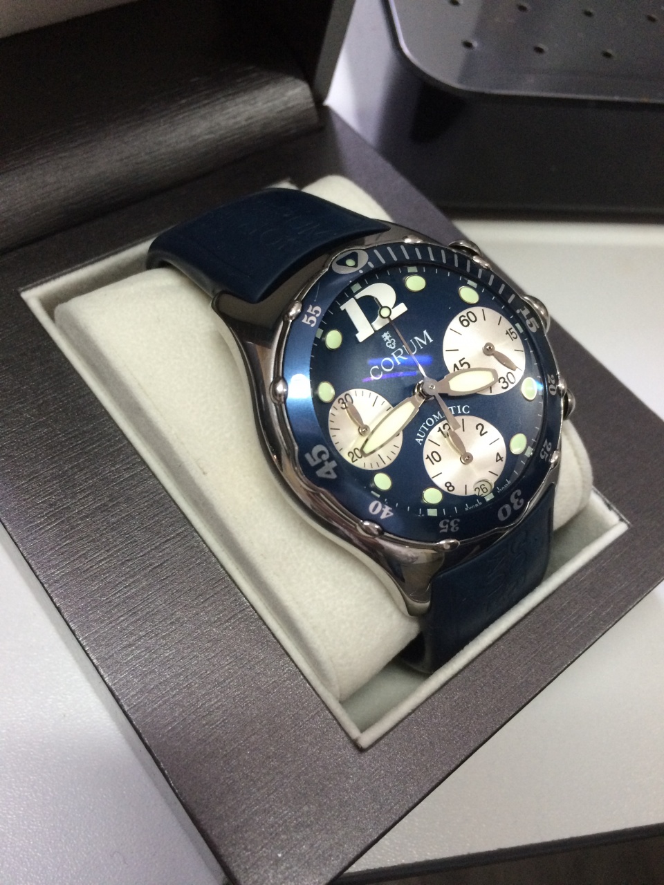 Довольно редкий пузырь, Corum Bubble Automatic Chronograph синего цвета. Ref. 285.180.20, водозащита 200м