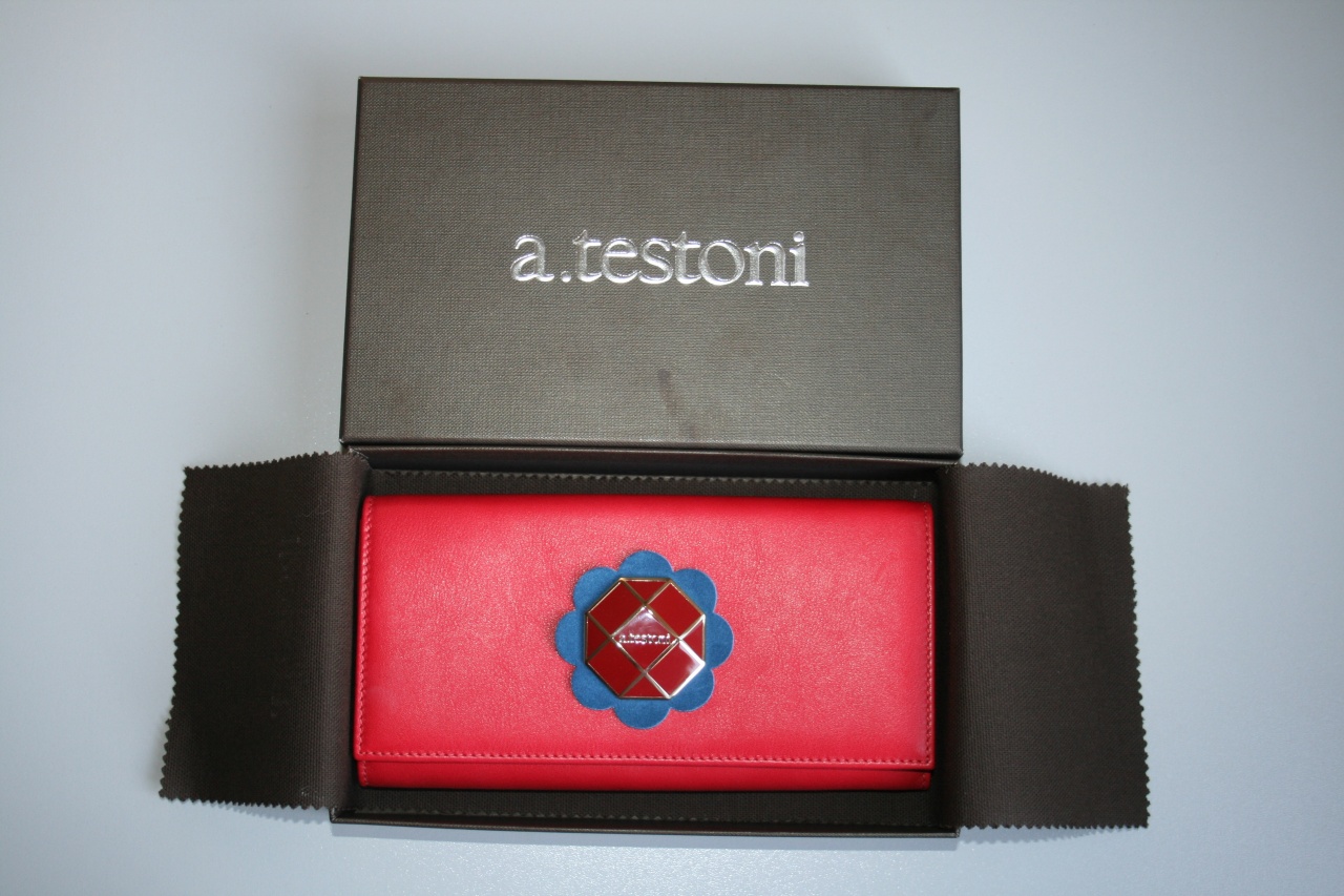 < < < [новый женский кошелек] TESTONI * кожа NAPPA * красный * S/S-2014 * -50% > > >