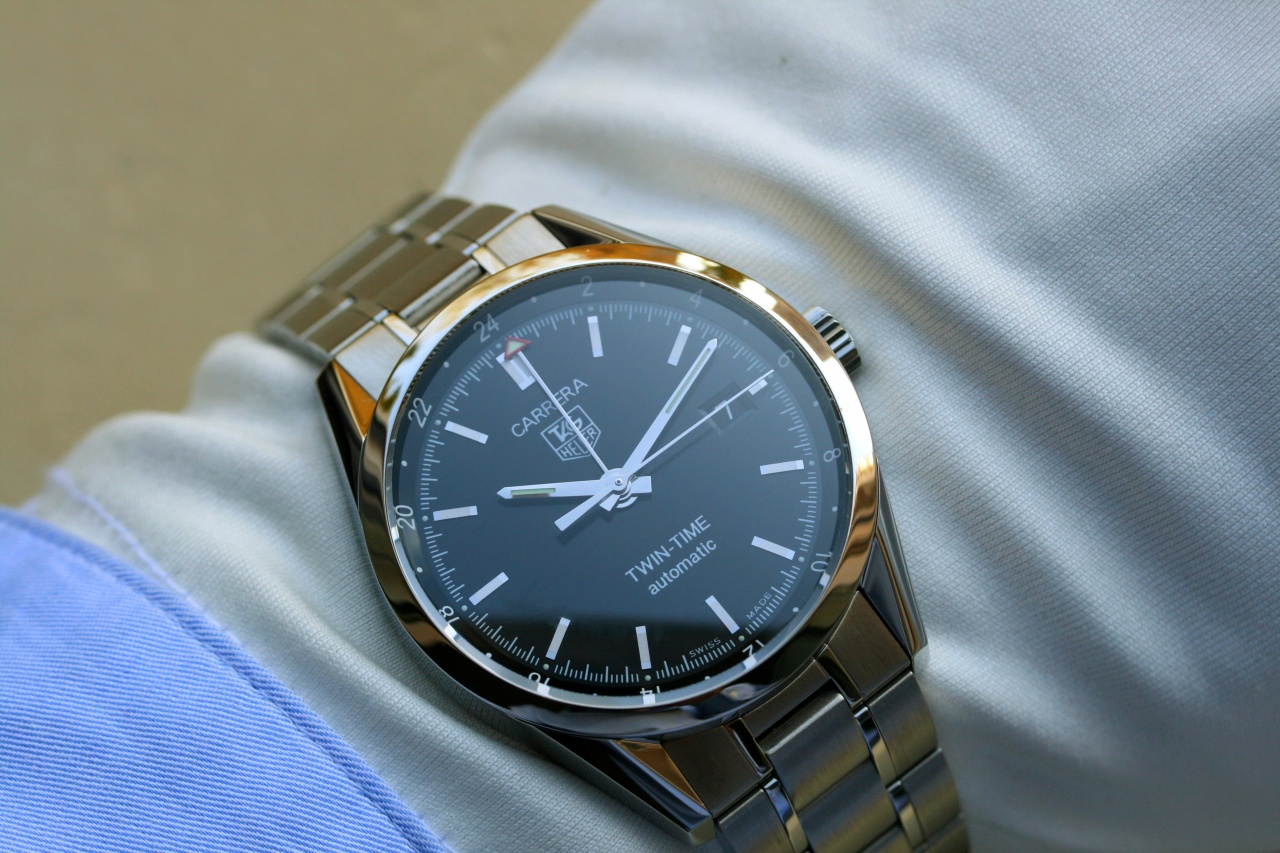 < < < TAG HEUER CARRERA TWIN-TIME ** черный цифер ** 2 часовых пояса ** браслет > > >