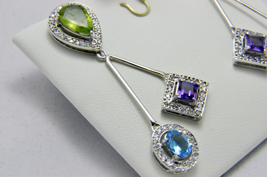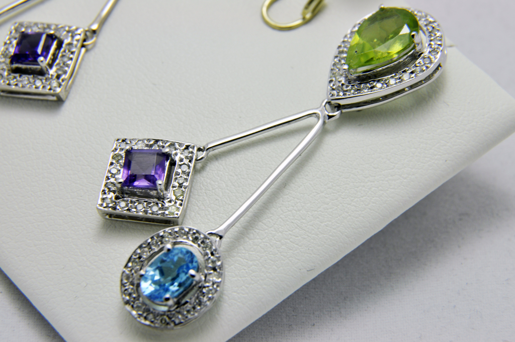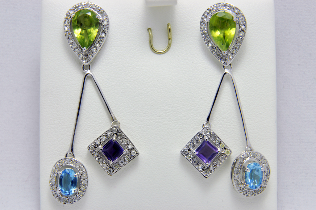 ---Серьги---белое золото---бриллианты, перидоты, аметисты, топазы весом 5 карат---