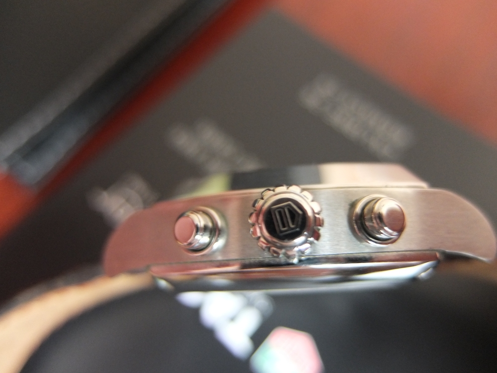 Функции: часы, минуты, секунды, дата, хронограф с точностью 1/10 секунды. 12-часовой и 30-минутный счетчики хронографа. Центральная секундная стрелка хронографа. Водостойкость 50 метров.