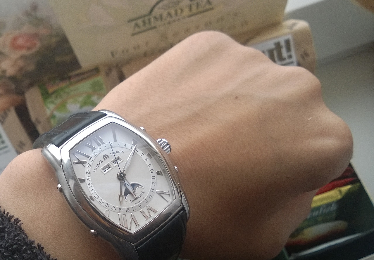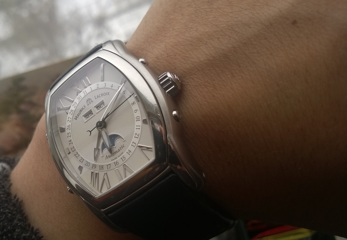 Крупный, красивейший "Маурис Лакруа" из топовой линейки, с множеством усложнений, таких как: Фазы луны, указатель даты отдельной стрелкой, день недели, месяц - "& Complete Calendar"(полный календарь).