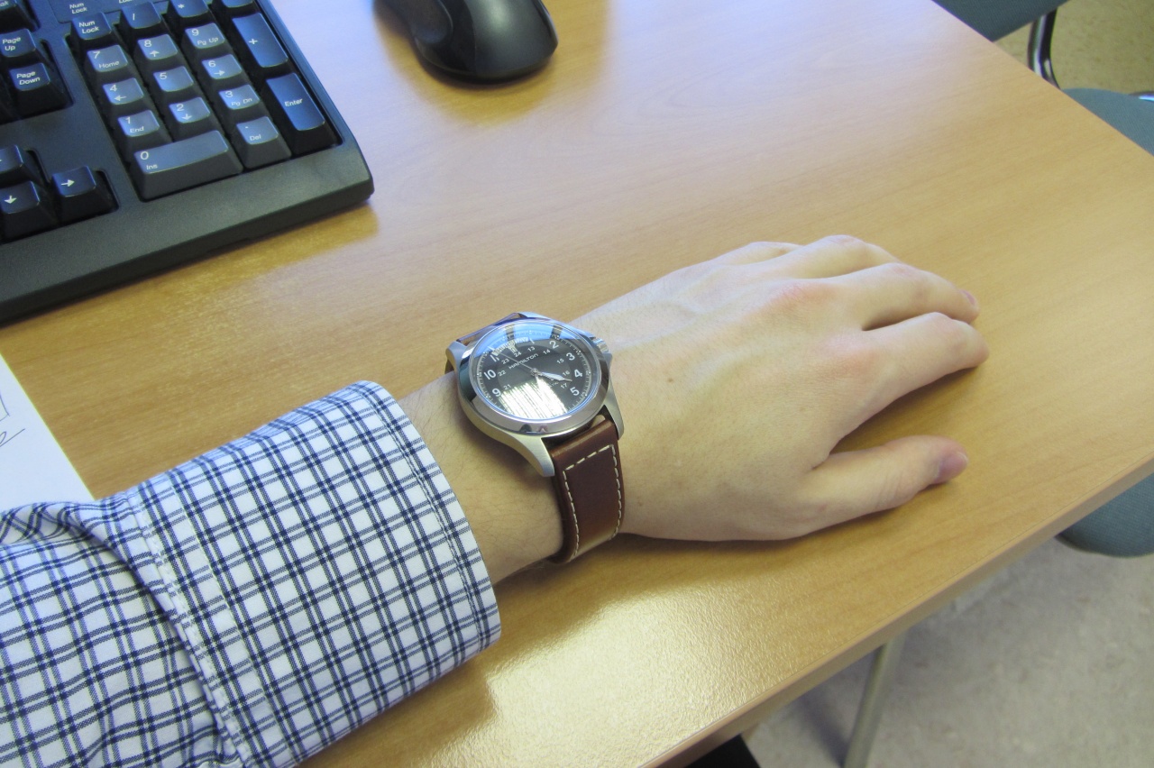 ) Hamilton Khaki King Automatic – как положено, с чёрным цифером и на ремне.