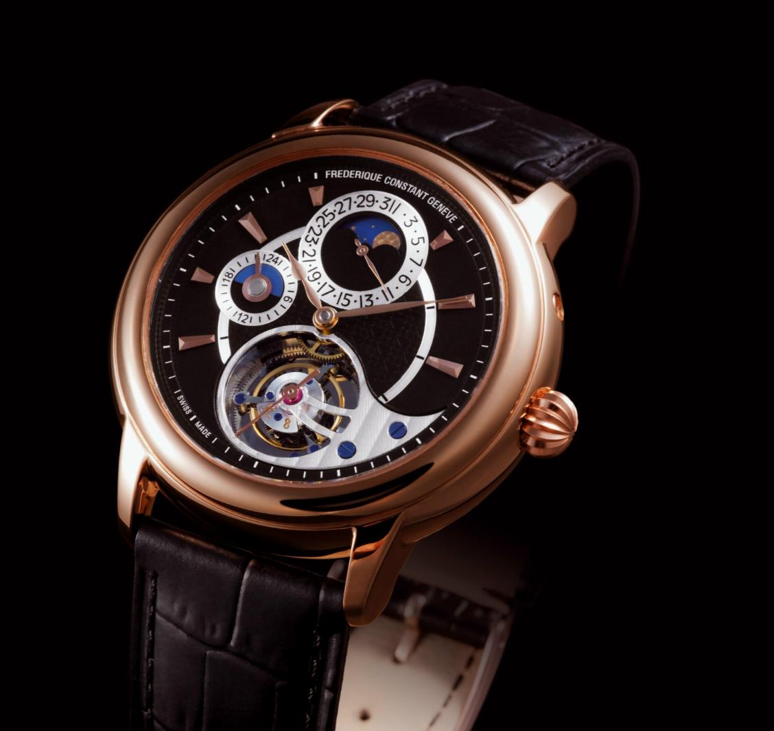 В 2008 году Frederique Constant представила на Baselworld свой первый мануфактурный турбийон. Полностью разработанный компанией, механизм имеет много уникальных особенностей, в том числе - кремниевое колесо спуска. В этом году, Frederique Constant подтверждает это достижения начав выпуск модели Manufacture Tourbillon Moonphase Date 24 Silicium.