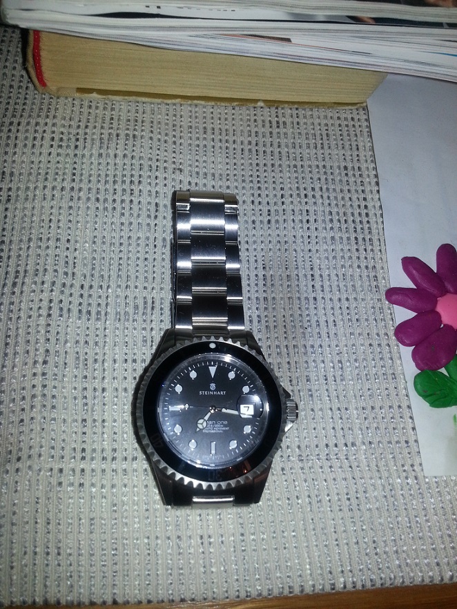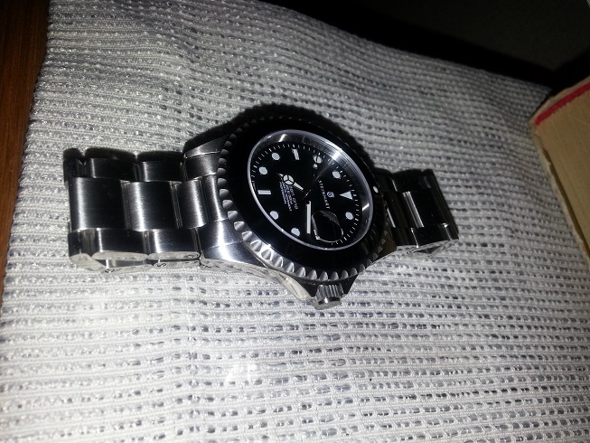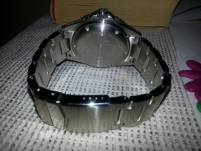 Приобретен в магазине Watchcenter.com.ua. Продавцом установлен керамический безель. Пленки сняты, браслет укорочен на запястье 18 см.