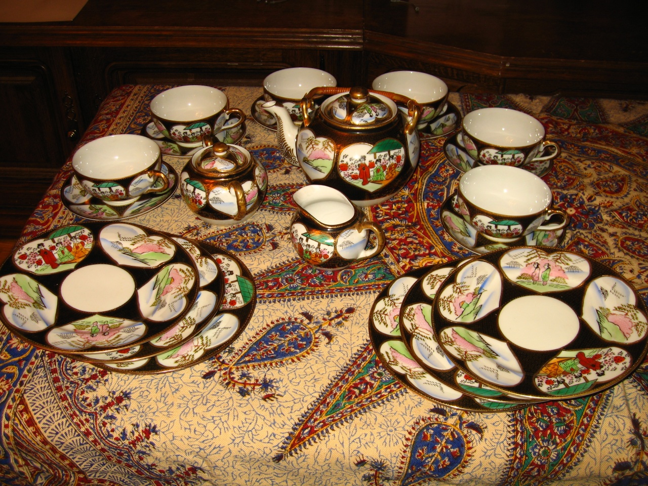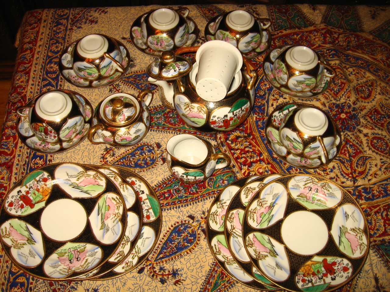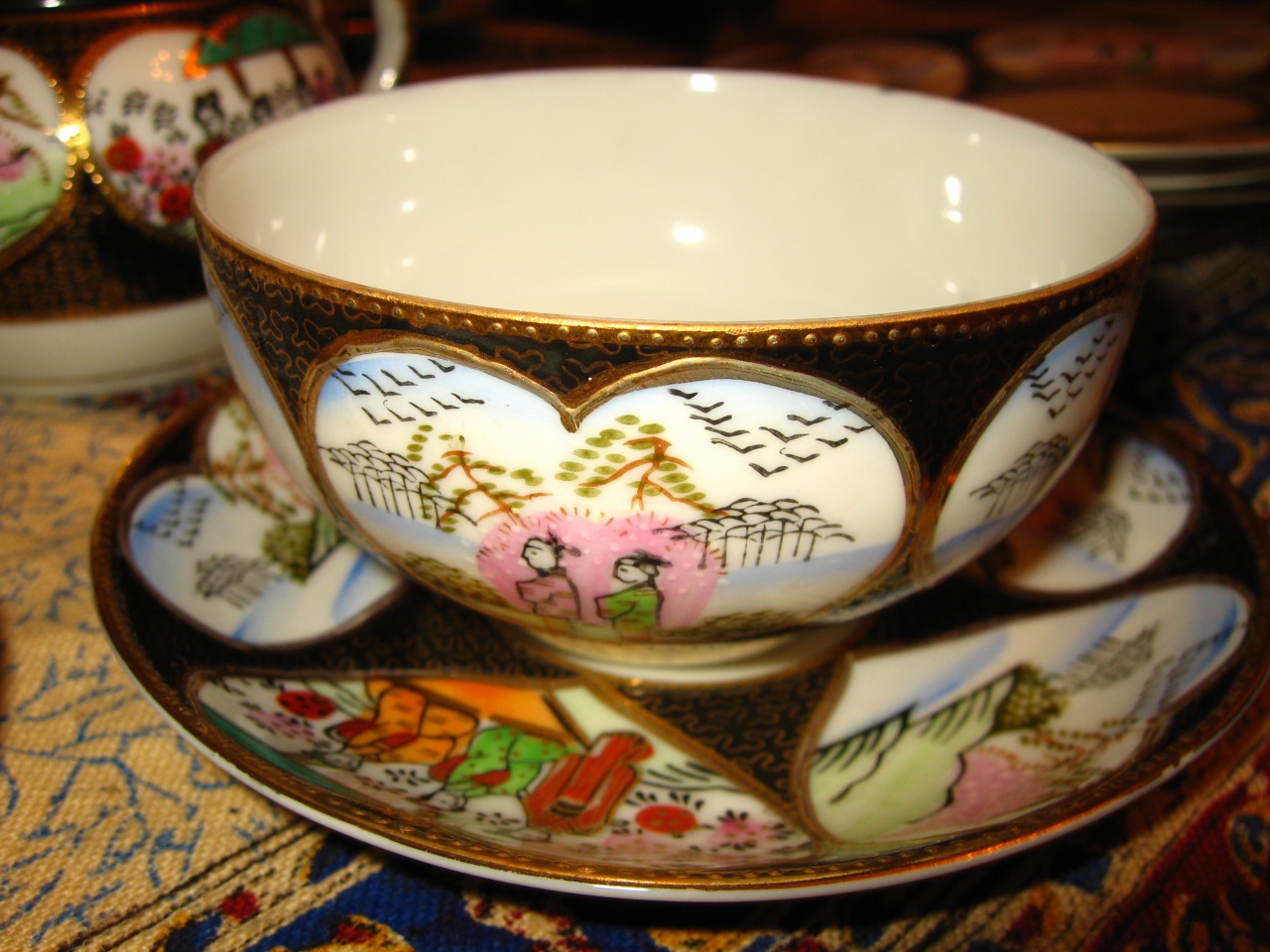Эксклюзивный костяной фарфор с золотым орнаментом 1950 год (водяные знаки Япония)