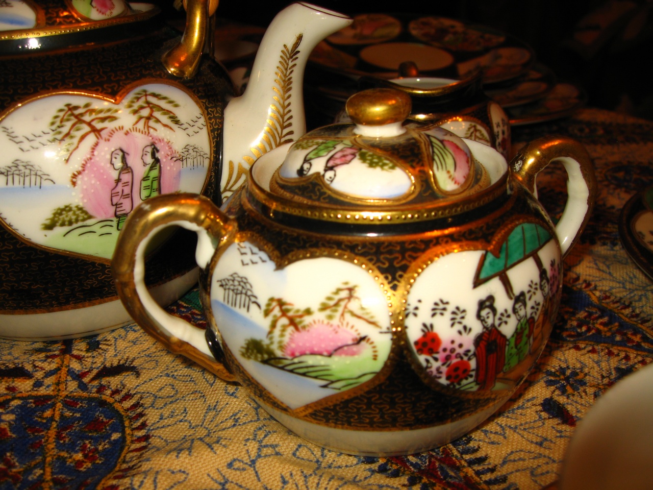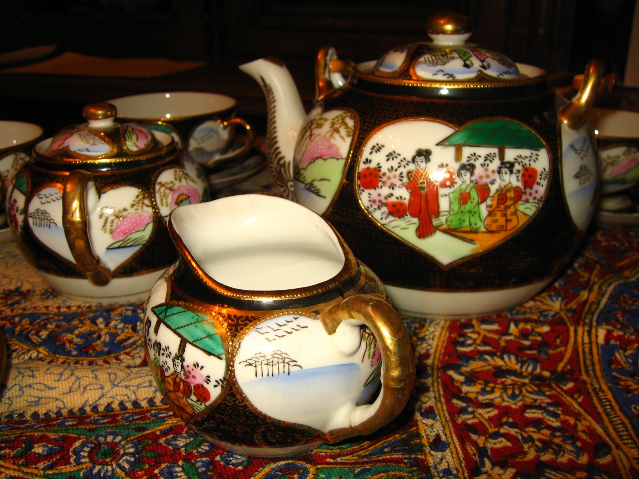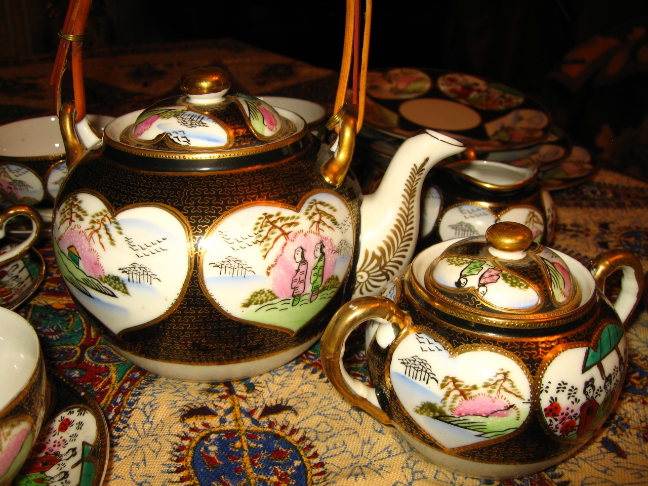 Эксклюзивный костяной фарфор с золотым орнаментом 1950 год (водяные знаки Япония)