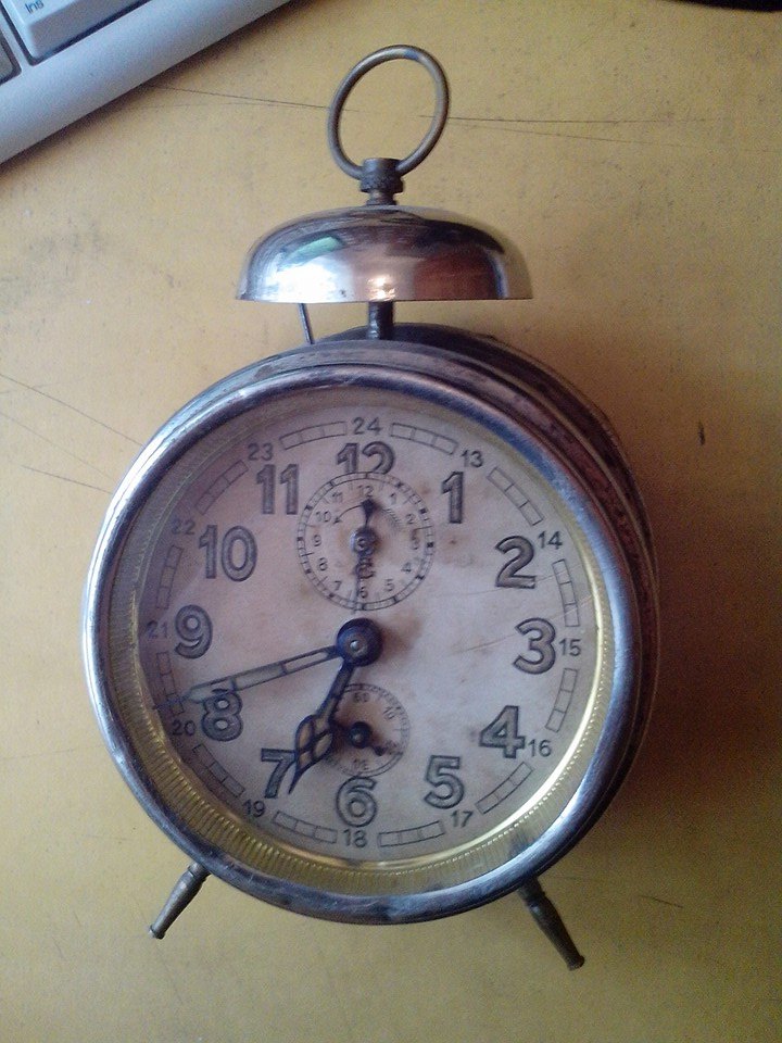 И еще: ОЧЕНЬ АККУРАТНО обращайтесь с этим будильником. Люминофор мог потерять свойства светонакопителя, но сохранить радиоактивность. Со временем он стал сыпучим и есть серьезный риск вдыхания радиоактивной пыли.