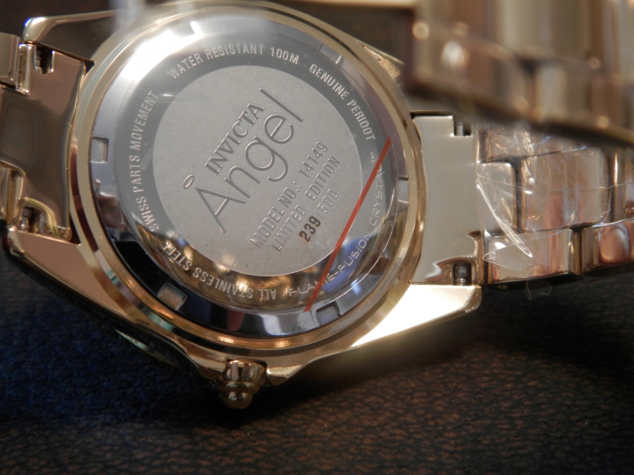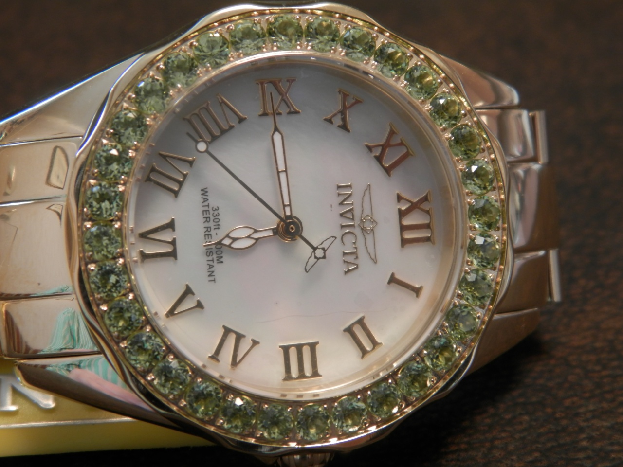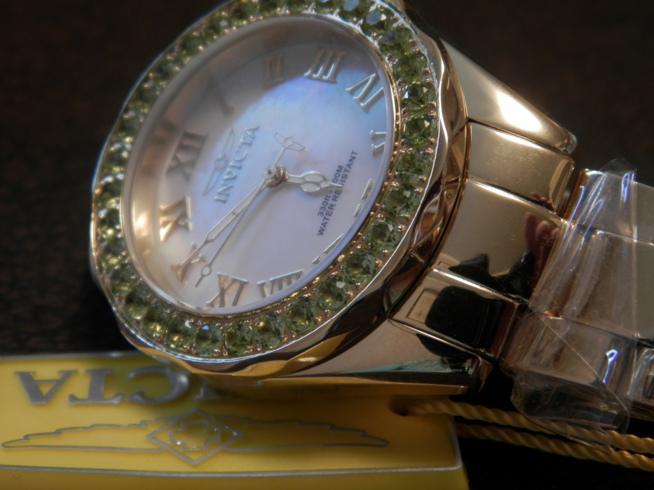 Женские Invicta Angel,лимитированная серия 500 экз.,безель с натуральными камнями (хризолитами),38мм,18карат позолота