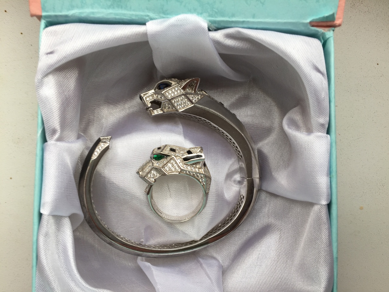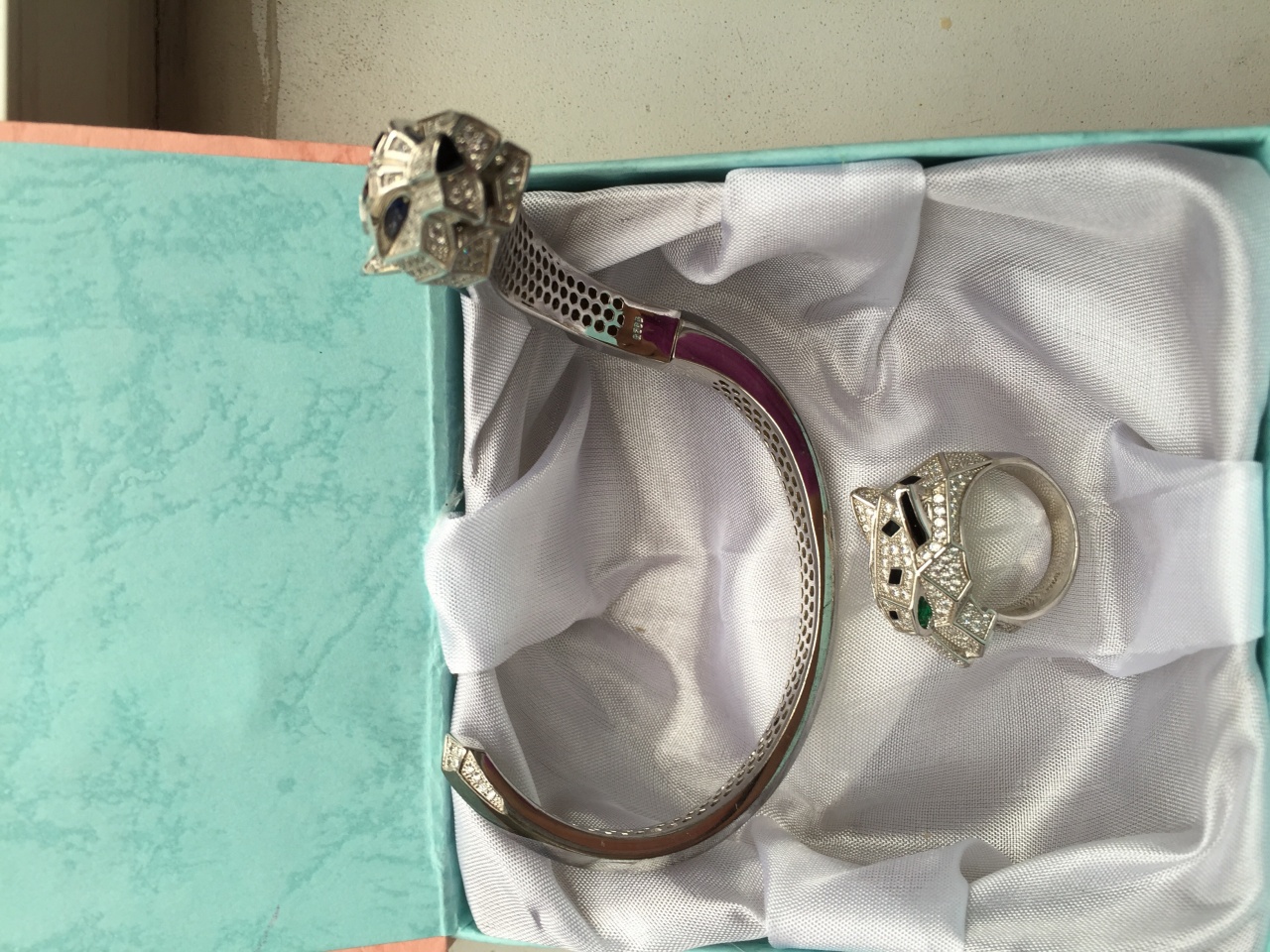Комплект с тиграми в стиле известного бвелирного дома - серебро, позолота, камни
