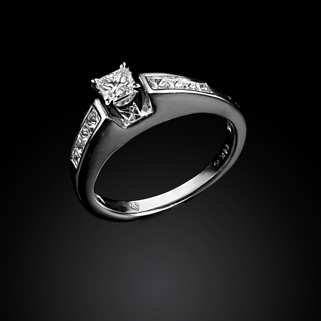 Центральный бриллиант огранки "Принцесса" весом 0,35 карат, цвет 6, чистота 6