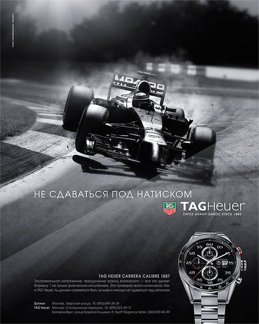 Авангардный швейцарский часовой Дом известен своим подходом нарушать общепринятые правила: интеллектуальный прорыв помогает преодолевать технологические ограничения и разрабатывать самые прогрессивные инновации. «Не сдаваться под натиском» утверждает абсолютную истину о том, что для достижения чего бы то ни было ментальные усилия важны не меньше, чем физические способности. Эта истина воплощается в дерзких часах и хронографах от TAG Heuer.