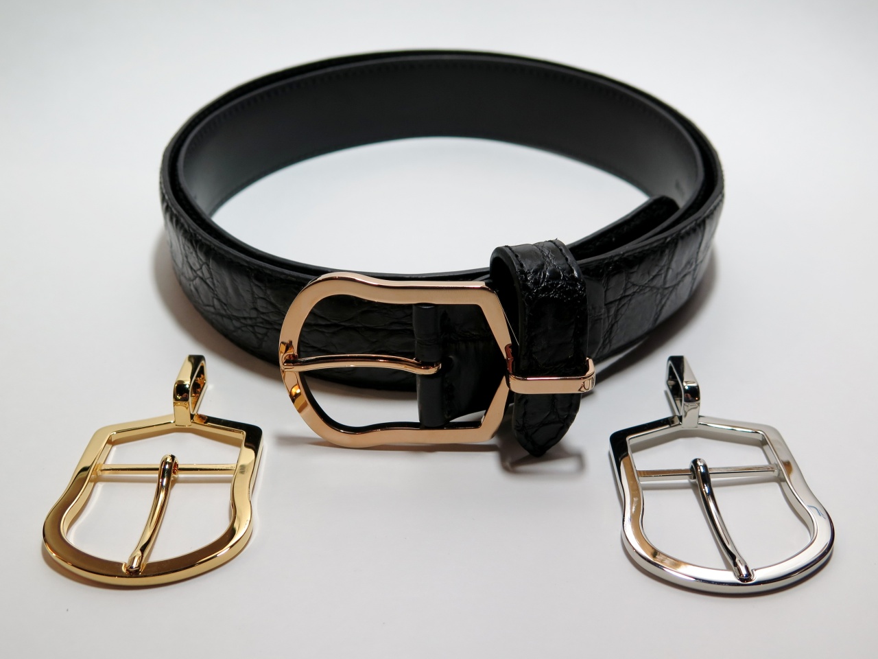 ВНИМАНИЕ!!! В комплекте к ремню прилагаются две сменные пряжки, изготовленные из никеля, покрытой желтым и розовым золотом. Каждая пряжка упакована в отдельный мешочек.