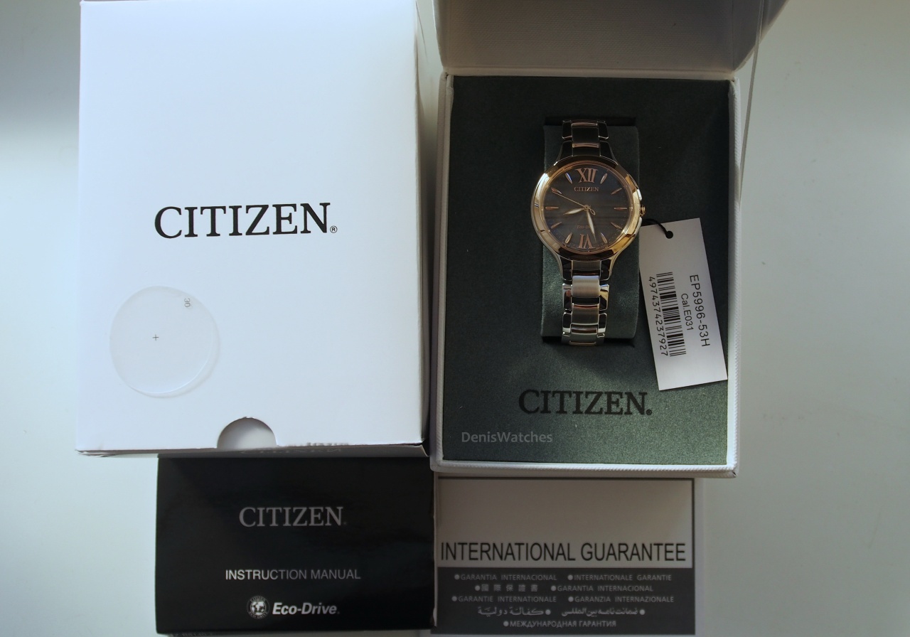 Женские кварцевые часы, механизм Eco-Drive(работает от солнца), калибр E031