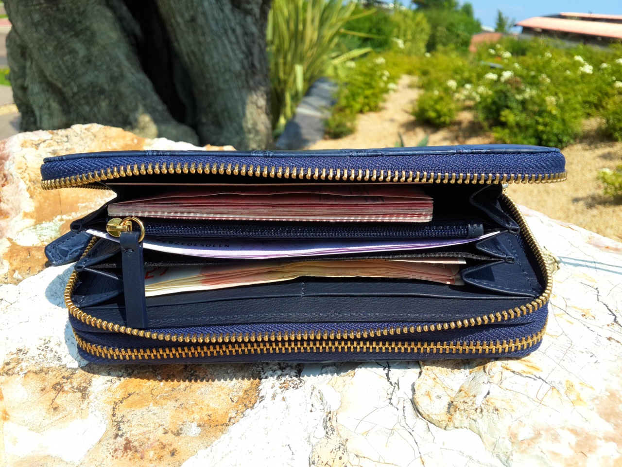 Новый мужской клатч ручной работы, цвет синий, изготовлен из ЦЕЛЬНОГО куска с живота аллигатора высочайшего качества выделки с матовой поверхностью. Клатч застегивается на две молнии с бегунками из кожи аллигатора и имеет три больших отделений для банкнот, 24 отделения для кредитных карт или визиток, отделения для паспорта, водительских прав, и других документов. Внутри клатч отделан телячьей кожей синего цвета.