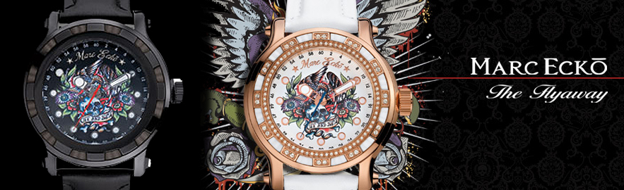 Коллекцию хронометров Marc Ecko 2009 отличает трендовая графика в стиле art fashion: центр циферблата украшает цветное тату – стильно, элегантно и, одновременно, вызывающе. Дизайнеры свободны в работе с цветом и фактурой. Непринужденно сочетаются абсолютно разные материалы: нержавеющая сталь корпуса и резина безеля, чёрный кожаный ремень и пряжка из белого золота (хотя более логичен металл корпуса). Flyaway выпущены в нескольких версиях: с эффектным чёрным ионным напылением на корпусе и стальной пряжкой. А также в корпусе из розового золота, пряжка – розовое золото и белый кожаный ремень.