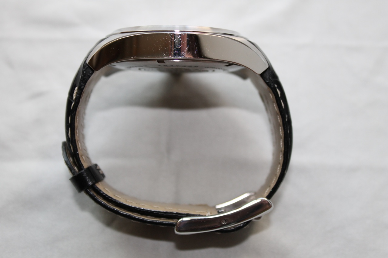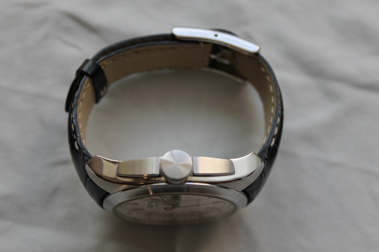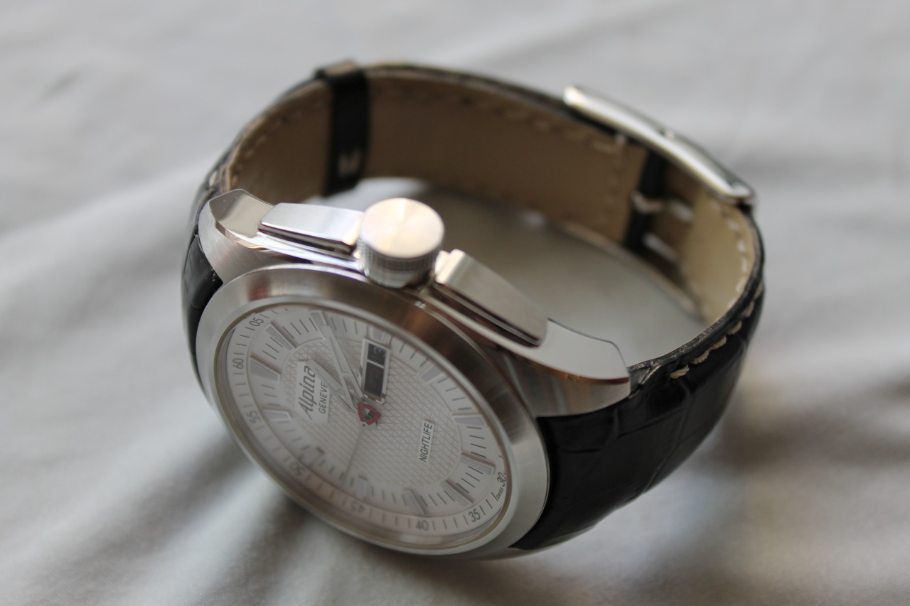 Кварцевые часы. Калибр механизма: AL-242. Способ отображения времени аналоговый (стрелки), формат 12 часов, секундная стрелка центральная. Индикация числа и дня недели. Сапфировое стекло. Люминесцентные стрелки и метки. Завинчивающиеся задняя крышка и заводная головка. Корпус выполнен из нержавеющей стали. Кожаный ремень. Диаметр корпуса: 44 мм, толщина: 11 мм.