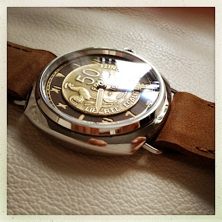 Цель- сделать часы в сатинированном корпусе с моим циферблатом- серебряной монетой, дорогой мне как память.