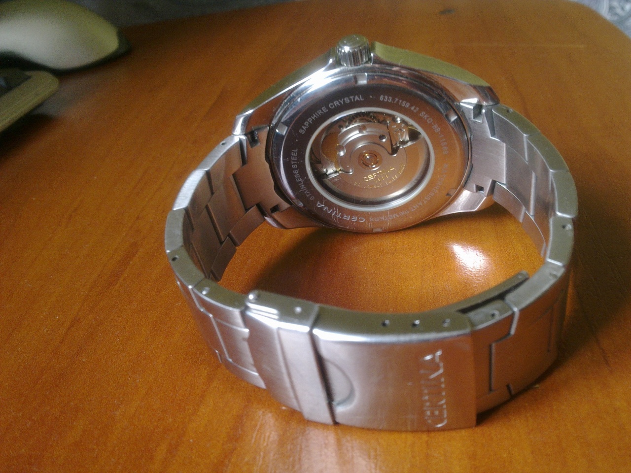 Произведена регулировка точности хода до +/- 5 сек./сутки, а также произведена полировка корпуса и браслета.