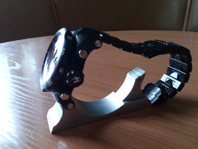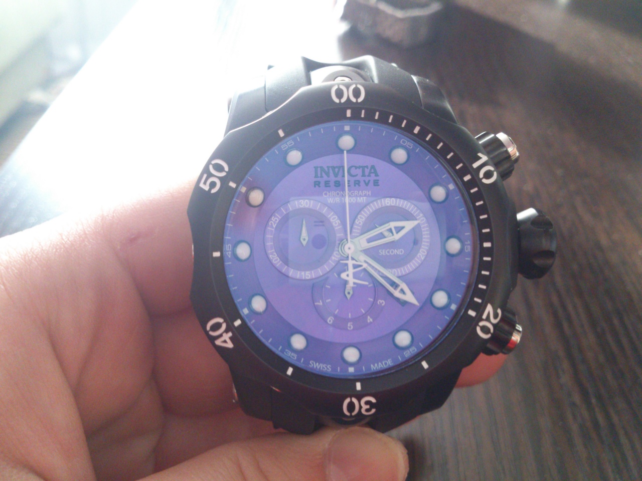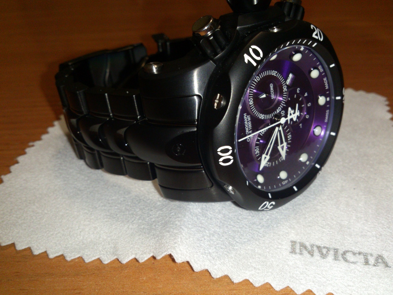 Продам очень красивый 1000 метровый Swiss made дайвер, хронограф. Циферблат пурпурного цвета, подсветка меток Tritnite, покрытие корпуса черное - PVD, заводная головка завинчивающаяся, как и кнопки хронографа. Однонаправленная дайверская безель. Диаметр корпуса 53.7mm, масса часов на стальном браслете около 440 грамм!!! Стекло Flame Fusion с анти бликом. Механизм кварцевый Swiss Ronda 5040.D. Быстросъемный механизм смены ремней, часы шли на каучуковом черном ремне (будет в комплекте). Был приобретен отдельно стальной браслет!!! Дополнительный комплект шпилек для ремня, ключ для смены ремней. Так же с часами поставляется стальная полированная подставка, позволяющая использовать часы в качестве настольных, она подходит для часов с посадочным креплением ремней 26mm и 16mm.