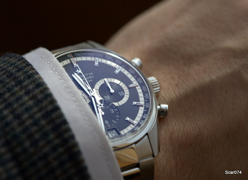 Продам хронограф ZENITH EL PRIMERO на браслете, в отличном состоянии - ничего криминального, мелкие еле видимые царапки на полированной поверхности, подтверждающие недолгую (с апреля), бережную эксплуатацию.
