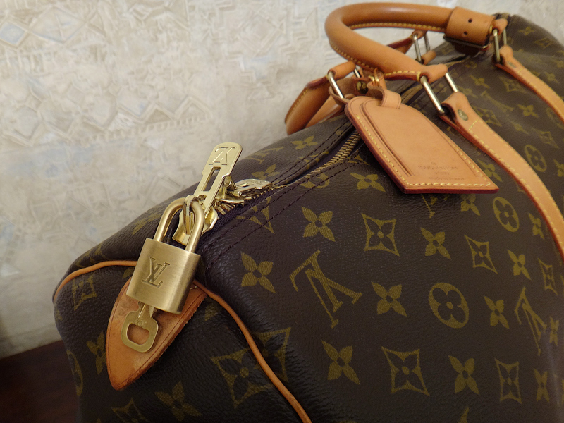«Легендарная сумка Keepall, появившаяся в 1930 г., является олицетворением духа современных путешествий. Легкая, мягкая сумка готова немедленно отправиться в путешествие и полностью оправдывает свое название: эксперты икусства упаковки смогут легко сложить во вместительную сумку Keepall 50 (которая соответствует нормам размеров ручной клади) гардероб на неделю. Модель представлена в классической канве Monogram.»