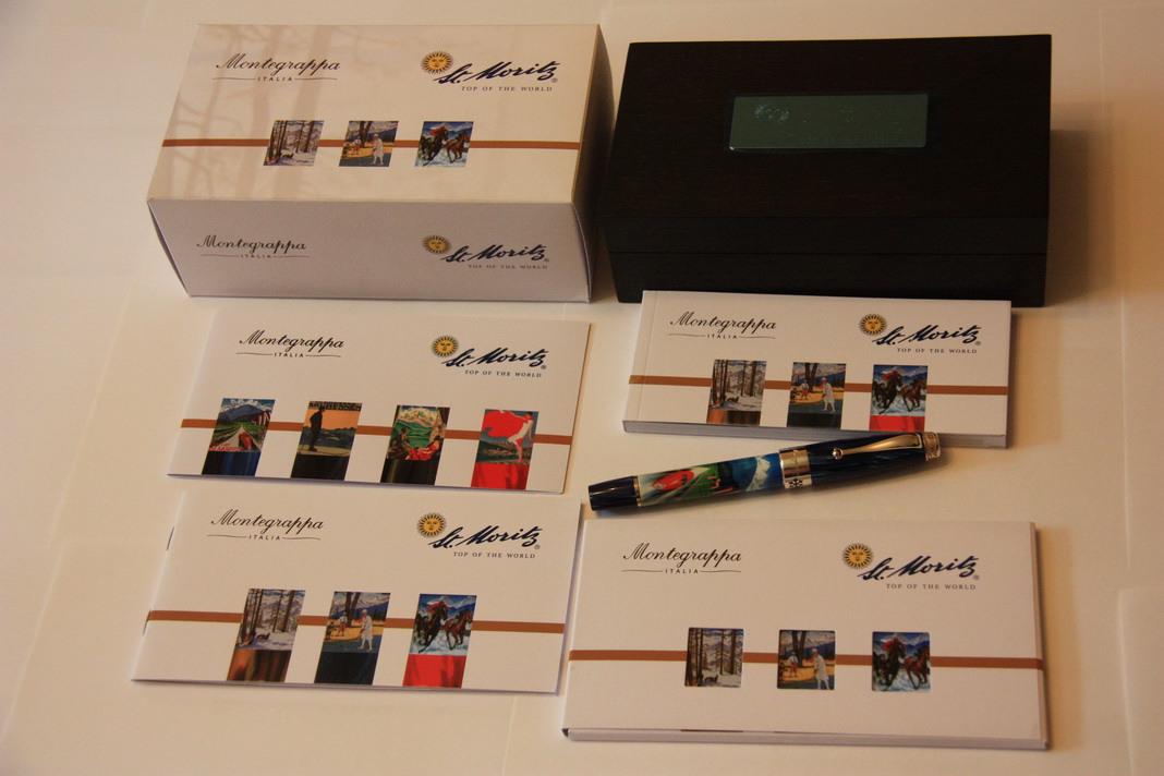 Новая коллекция компании Montegrappa - 'Сент-Мориц' - включает четыре тематические варианта декора, которые основаны на четырех плакатах, относящихся к разным периодам и привлекающих своим нестареющим очарованием. 'Неделя автомобилей' 1929 г., автор Баумбергер - представлена в образе блестящего красного гоночного автомобиля, мчащегося на огромной скорости в сторону гор. Лимитированная коллекция включает 300 перьевых ручек и 300 роллеров с отделкой из серебра 925 пробы.
