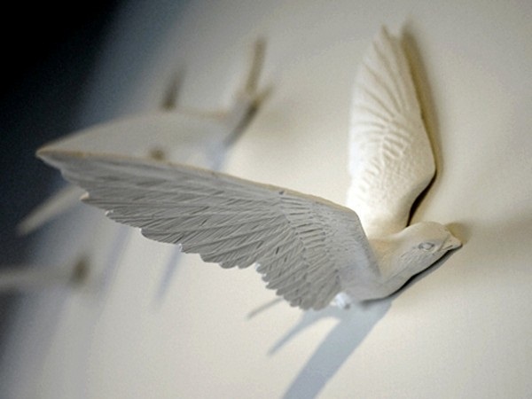 Двенадцать легких изящных ласточек, сделанных вручную из искусственного камня, заменяют привычные, но скучные цифры на циферблате, и тем самым превращают традиционный предмет интерьера в оригинальный и стильный арт-объект. Причем он одновременно получается и функциональным, поскольку проект Swallow X clock это все же настоящие часы, и декоративным, ведь миниатюрные скульптуры ласточек очень живописно расположились на полотне циферблата и выглядят скорее украшением интерьера, чем бытовым аксессуаром.