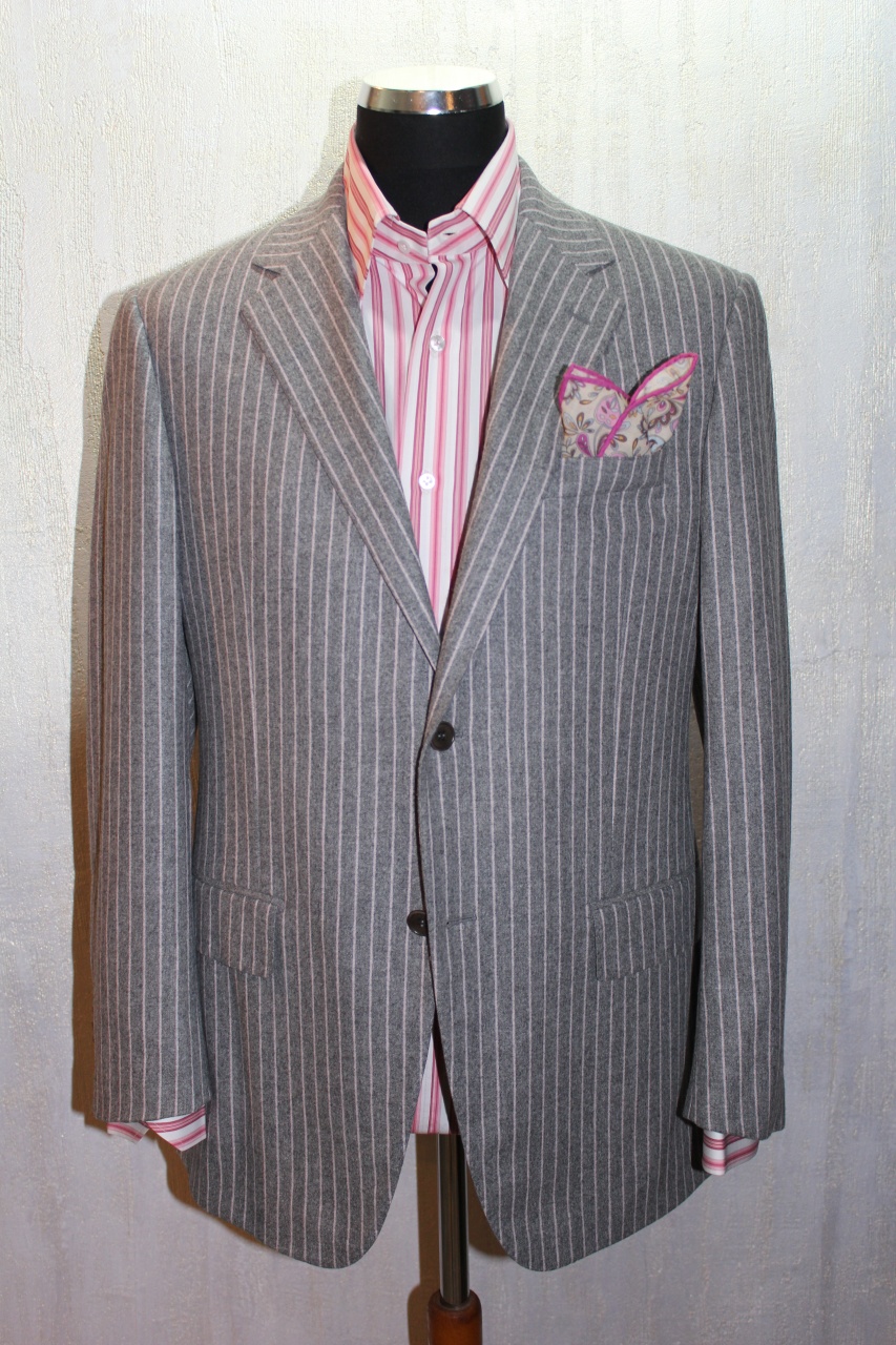 Новый классический мужской костюм на подкладке от итальянской марки Cantarelli. Изготовлен из 100% вирджинской шерсти. Пиджак костюма имеет три внешних кармана (один под платок и два боковых кармана с клапанами) и три внутренних, и застегивается на пуговицы. Сзади пиджак имеет две шлицы. Брюки костюма застегиваются на молнию и пуговицу, и имеют два боковых кармана и два задних кармана, застегивающихся на пуговицы.