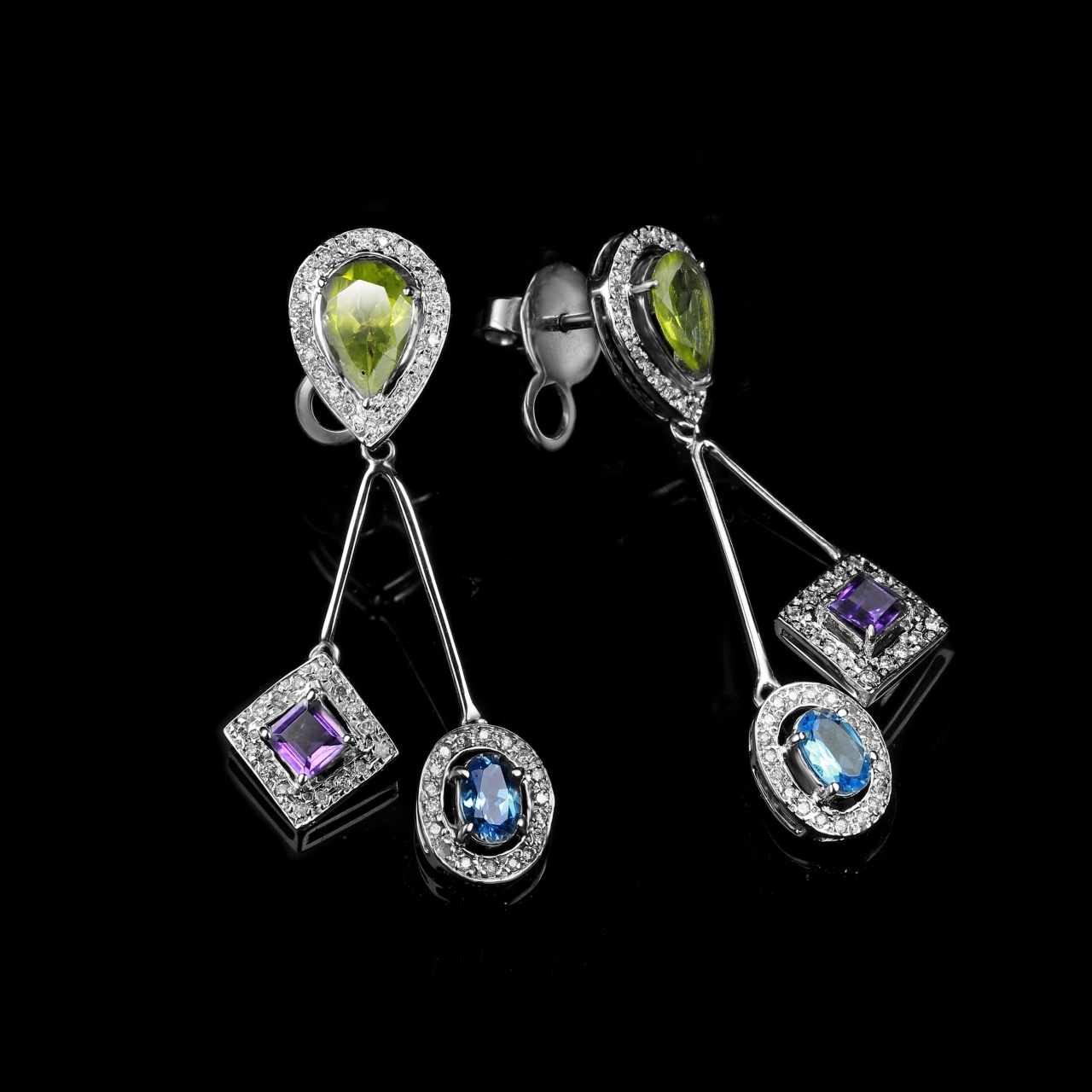 ---Серьги---белое золото---бриллианты, перидоты, аметисты, топазы весом 5 карат---