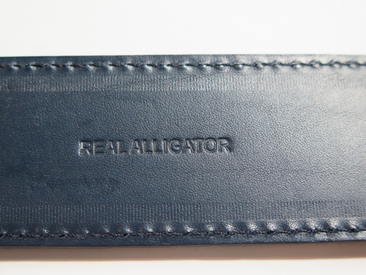Мужской ремень из кожи аллигатора + 2 сменные пряжки. Цвет темно-синий.Италия