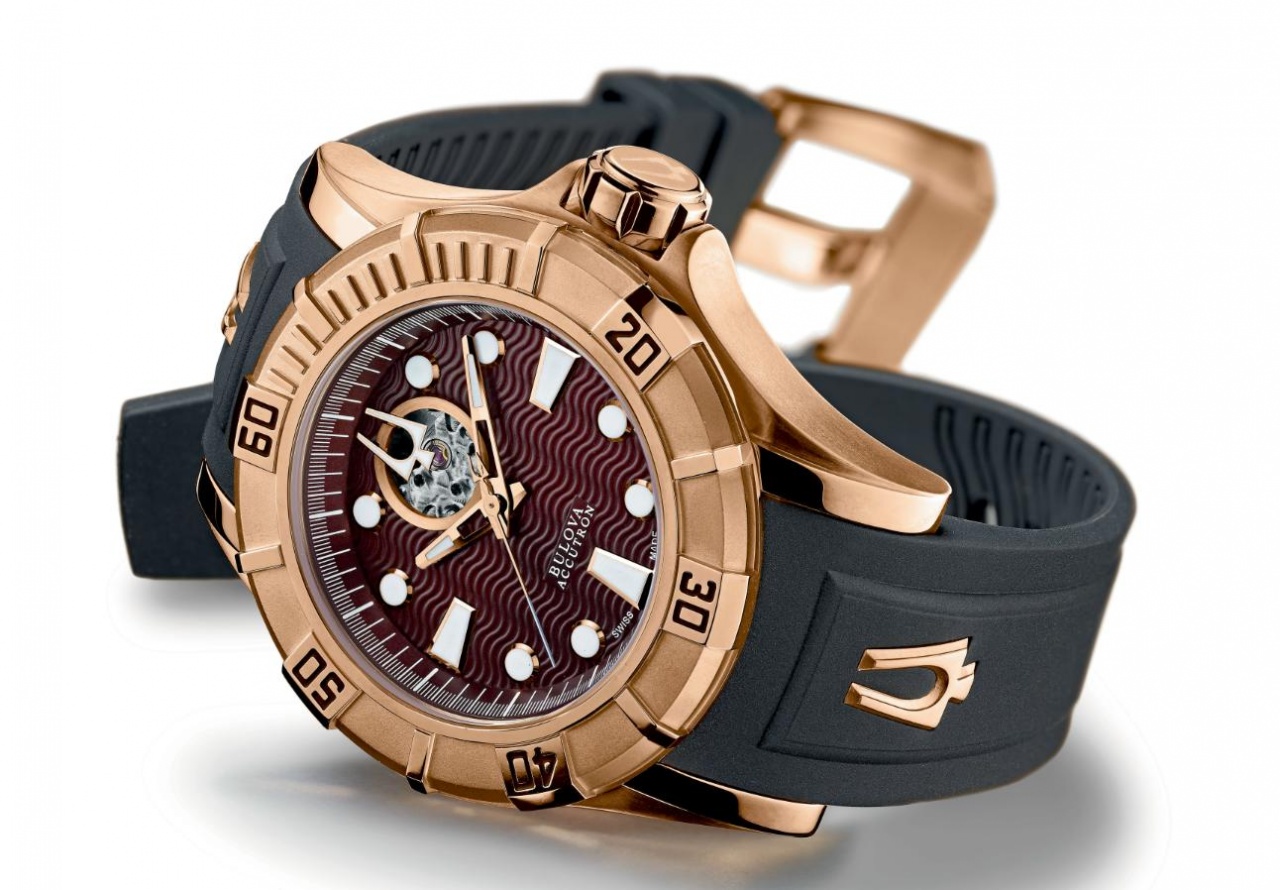 Корпус из нержавеющей стали с IP-покрытием розовым золотом, размером 44 мм x 11.5 мм. Сапфировое стекло. Водозащита 100 метров.