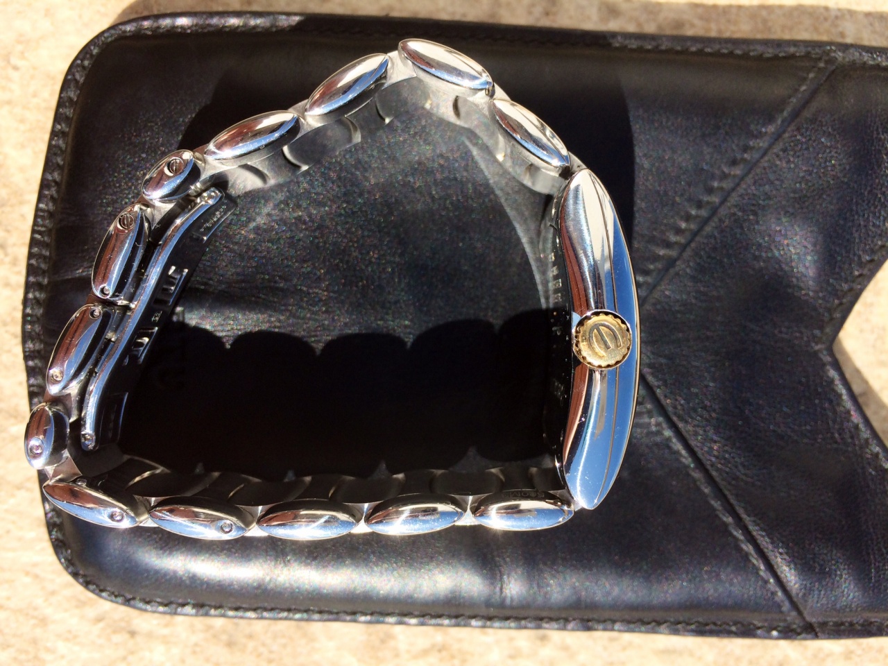 Корпус и браслет выполнены из нержавеющей стали со вставками из желтого золота 750 пробы.