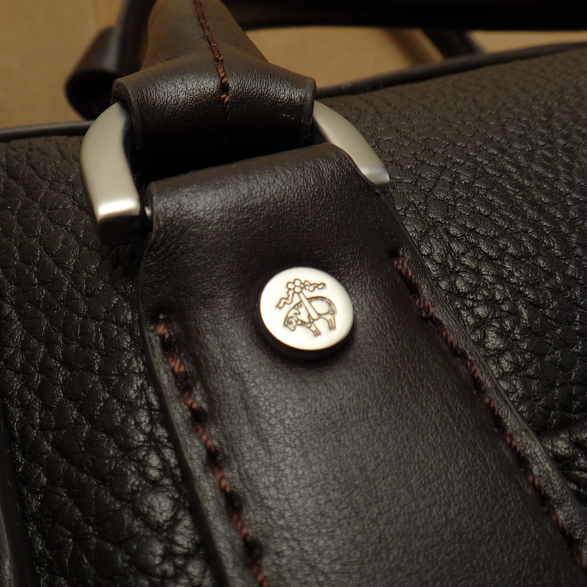 Внутри сумки подкладка из атласной ткани темно-синего цвета с логотипами компании Brooks Brothers.