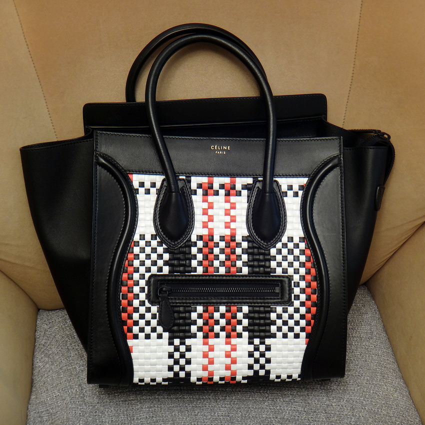 Сумка-легенда. И это лимитированная версия: черная кожа, с узором из плетеной кожи белого и красного цветов.