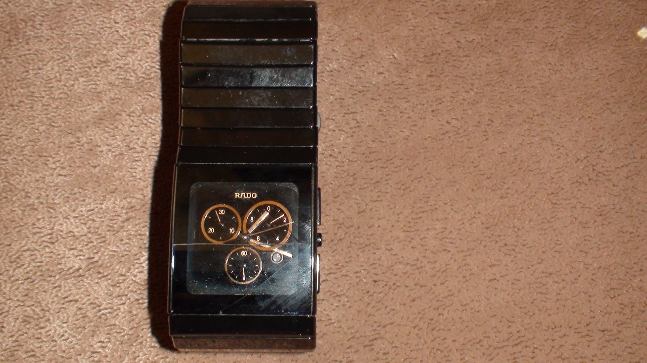 Кварцевые, корпус и браслет - черный, керамика, усложненная закрытая застежка из титана, размер корпуса 35*36мм, состояние - требует ремонта (трещина на стекле). Есть документы, 42 т.р.
