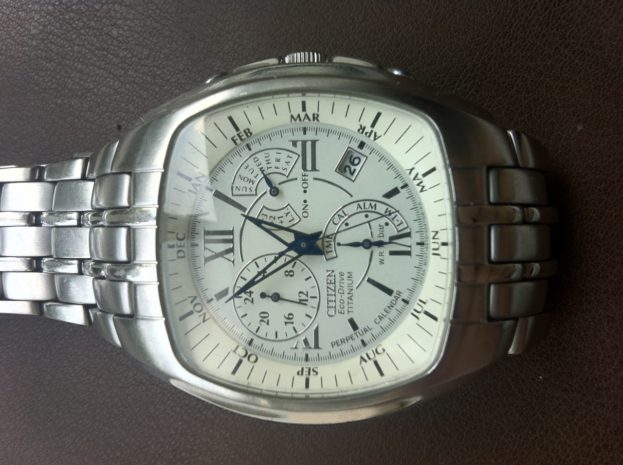 Понравилось то, что в режиме календаря "CAL" секундная стрелка указывает текущий месяц, то есть не ходит. Таким образом можно принудительно перевести часы в режим экономии батареи.