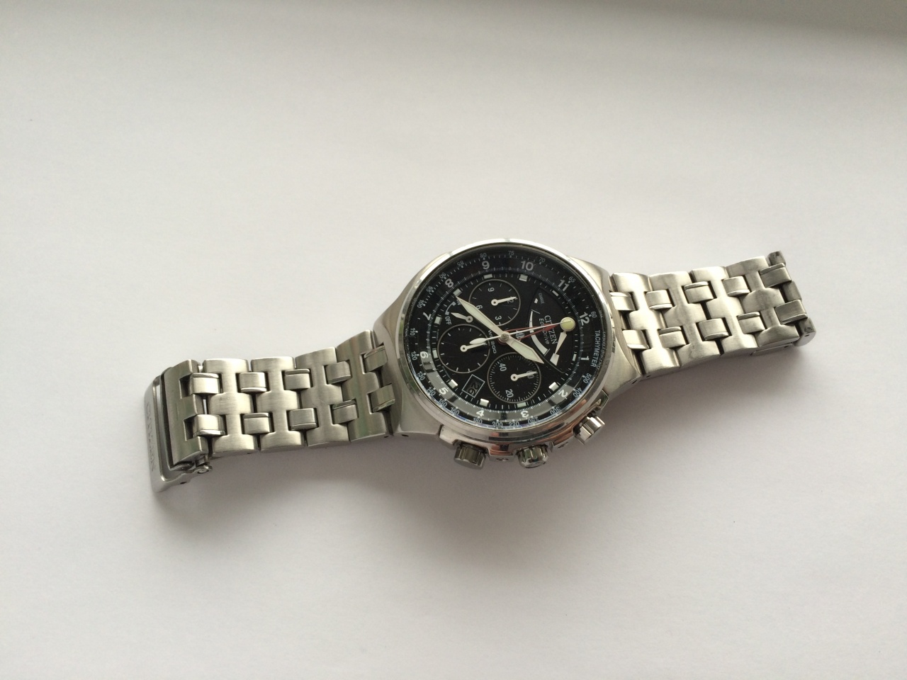 Часы покупались в конце 13 года, эксплуатировались аккуратно (есть следы эксплуатации - царапки на стекле, но не значительные - полировка стекла и они будут как из магазина). Комплект полный в коробке - Международный гарантийный талон, инструкции, дополнительные звенья для ремешка, даже все пленочки и бумажки остались. Торг возможен.
