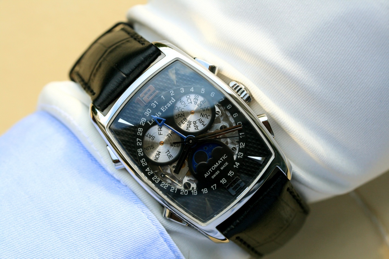 < < [полный календарь] LOUIS ERARD 1931 SQUELETTE * черный цифер * черная кожа > >