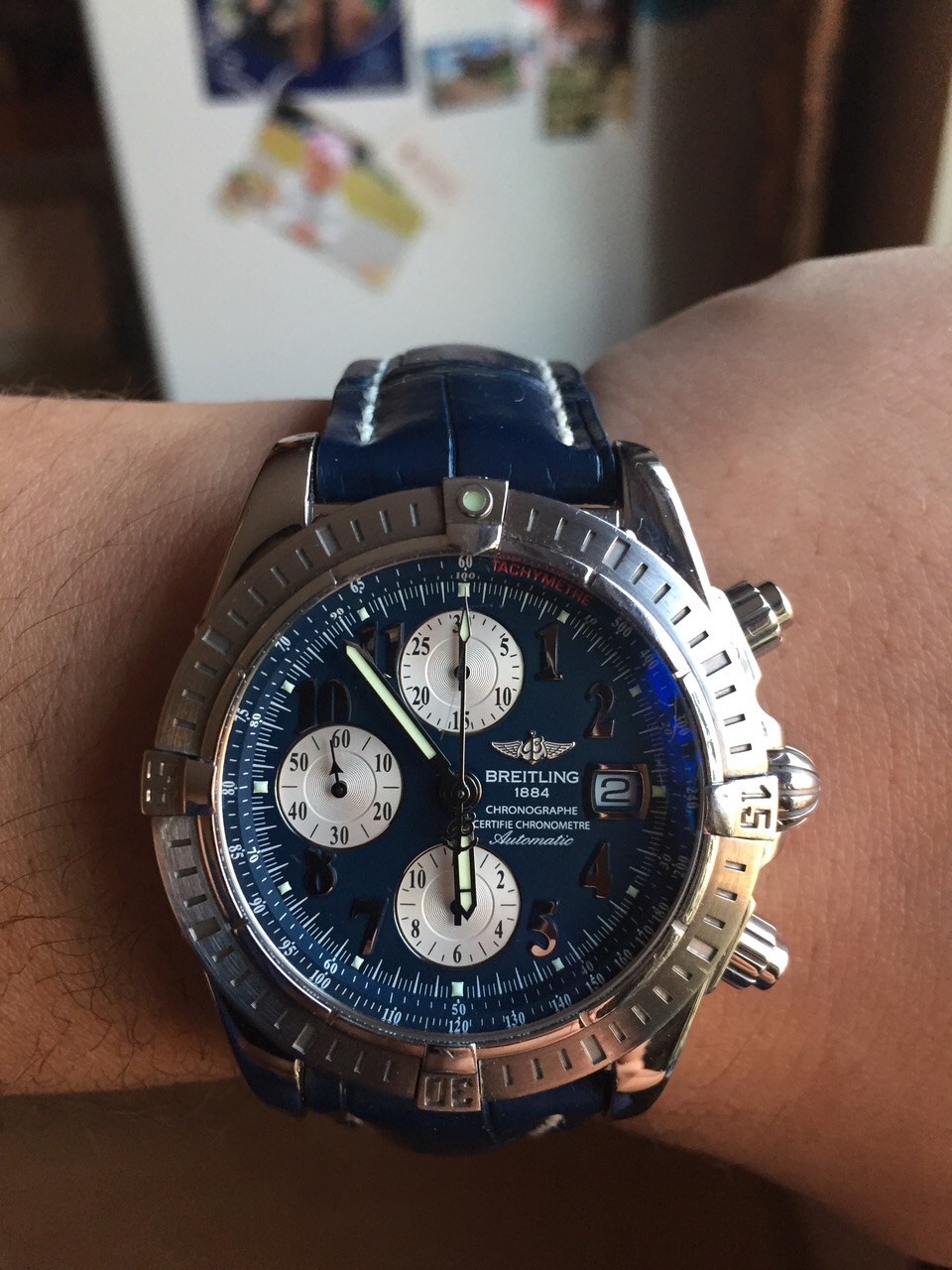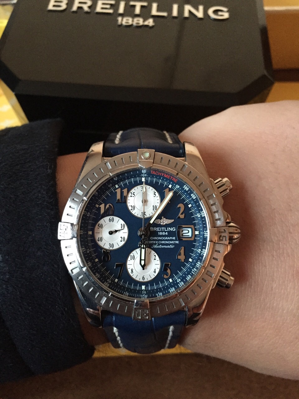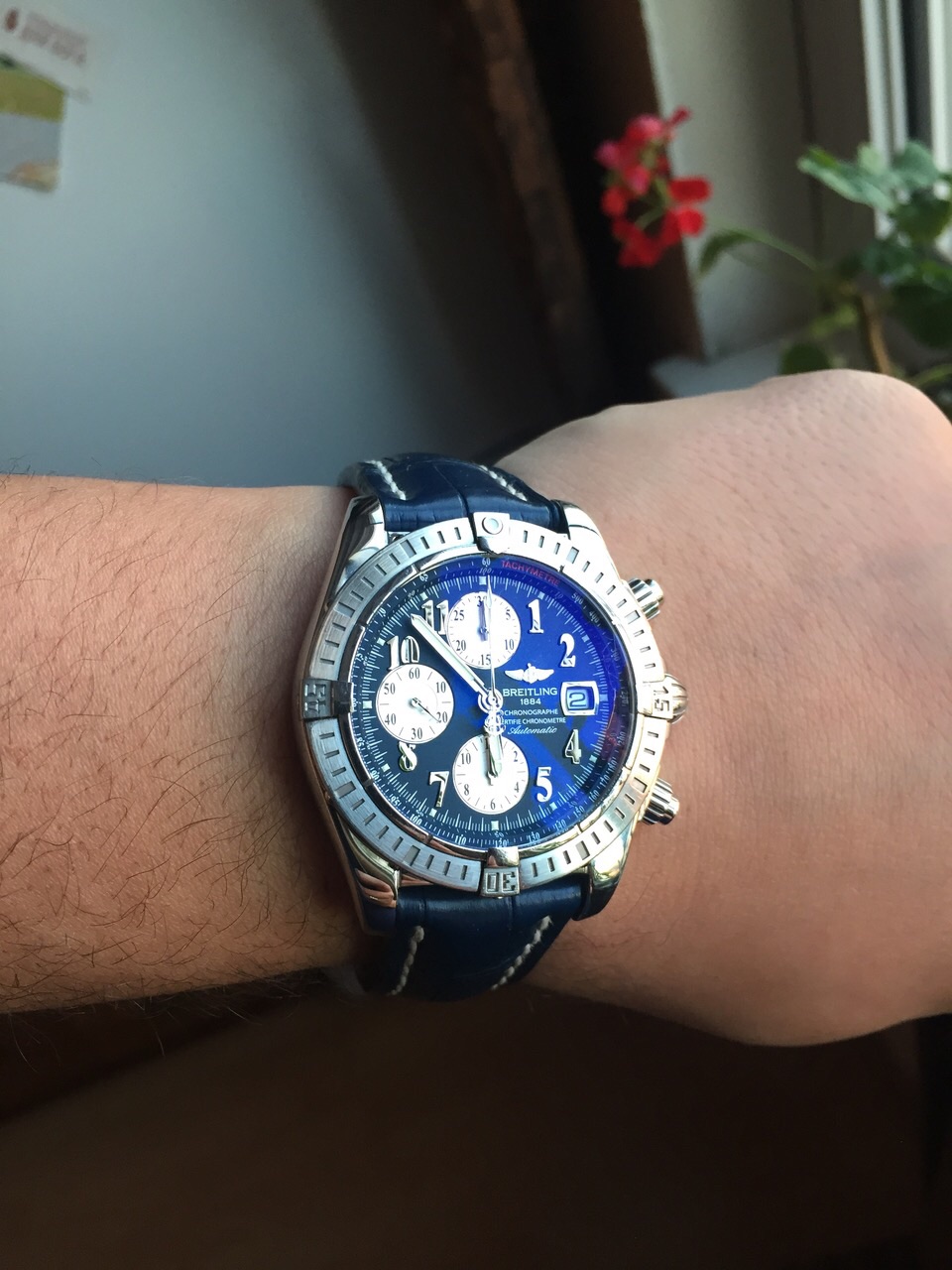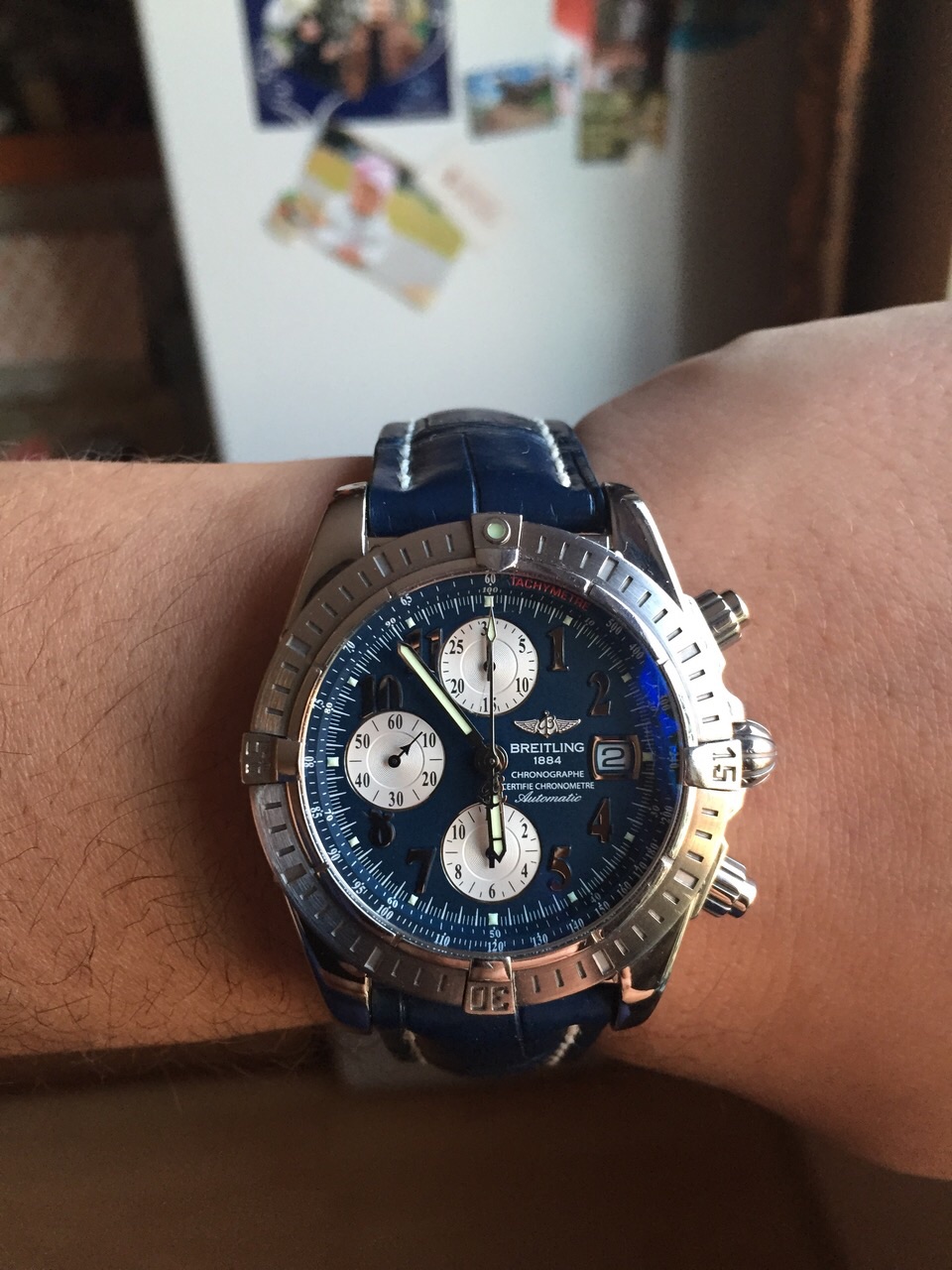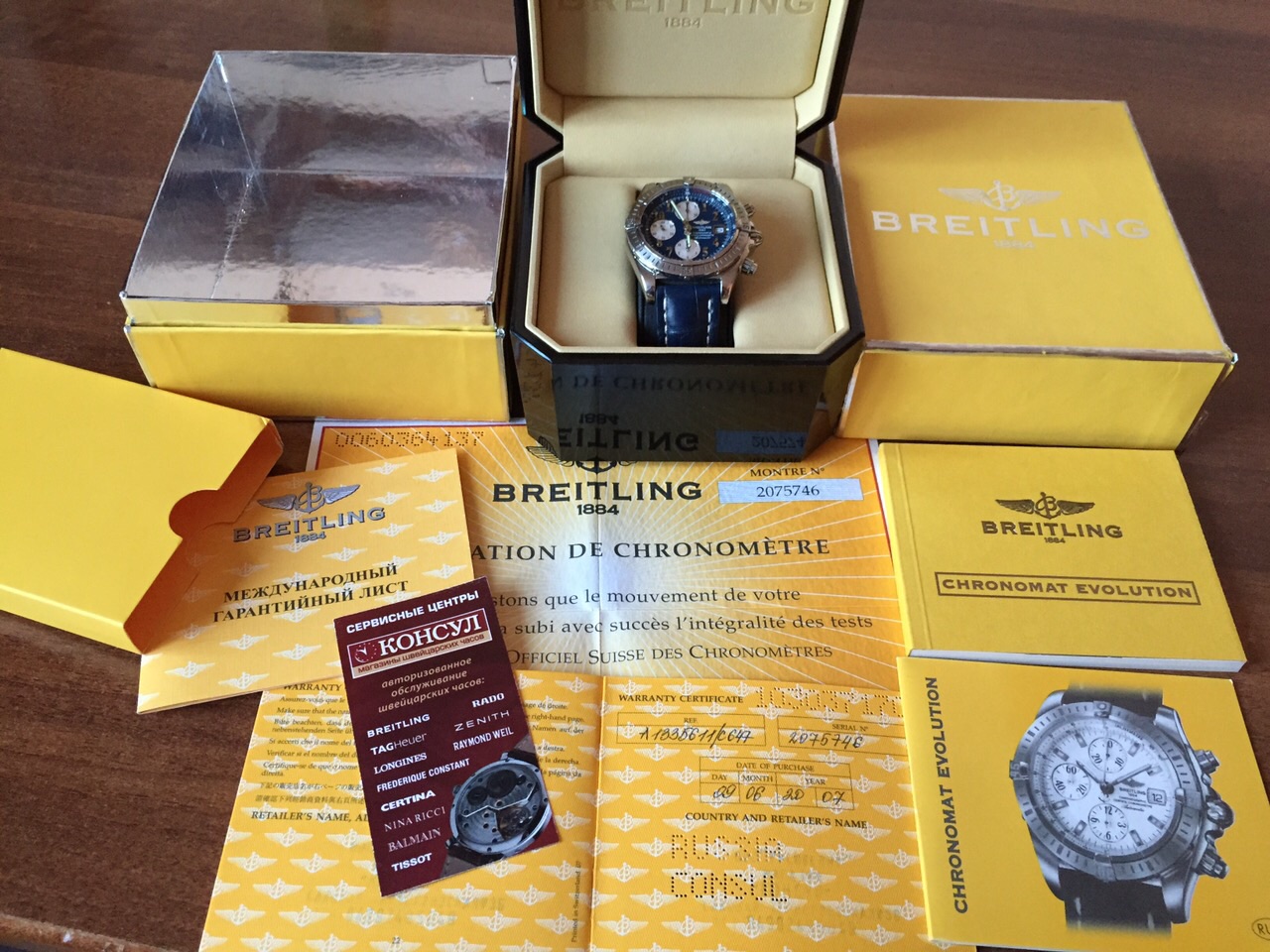Комплект наиполнейший! очень красивое сочетание синего циферблата и меток - арабские цифры из белого золота 750 пробы!
