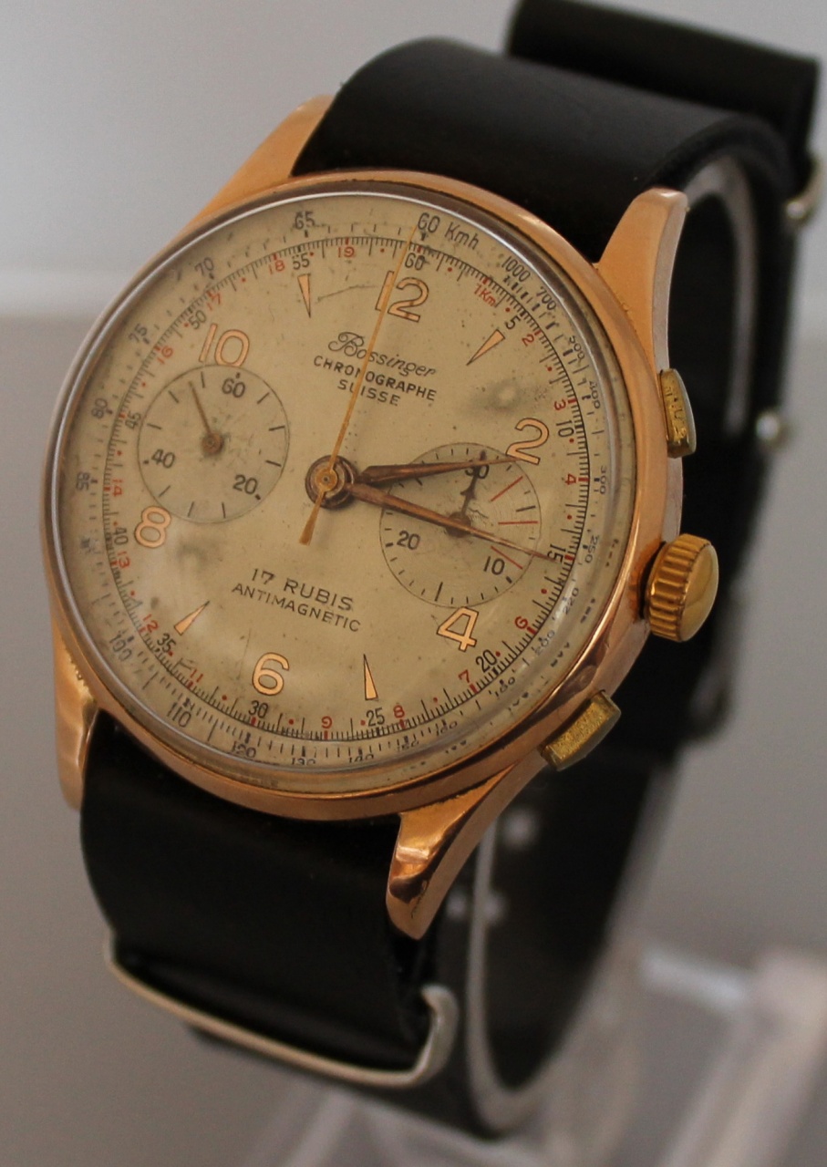 ЗОЛОТОЙ ШВЕЙЦАРСКИЙ ХРОНОГРАФ 50-е годы750-я ПРОБА