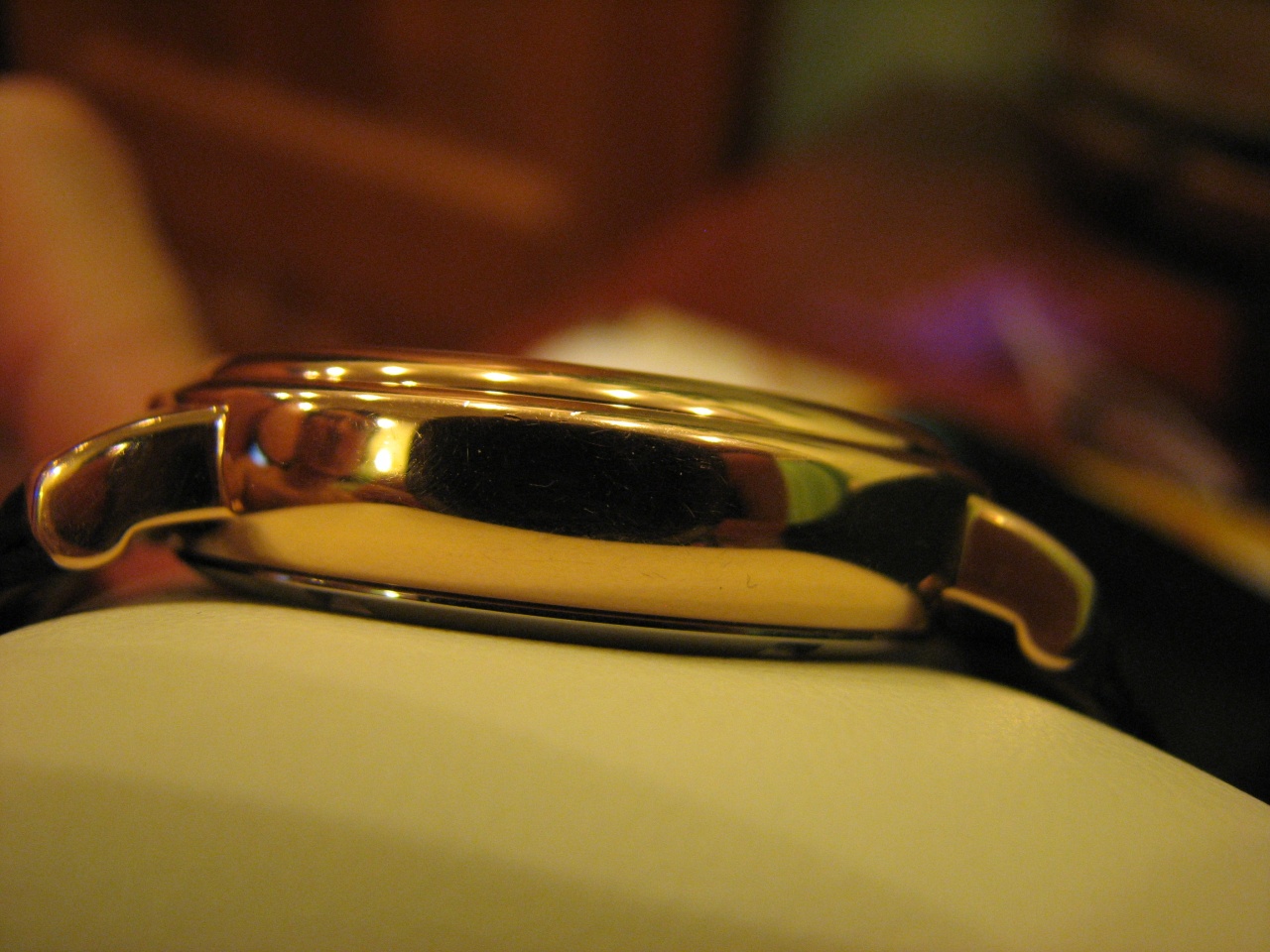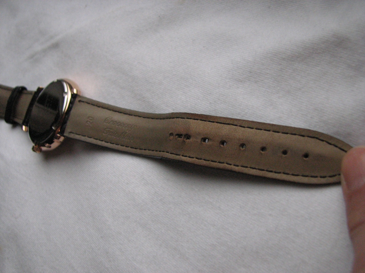 Видны следы носки, но ничего криминального: ни затёртостей, ни царапин нет. Обычная "паутинка". Задняя крышка, поскольку полирована в зеркало, следы обозначает, конечно, заметнее. Ремень не новый, но вполне ещё послужит.