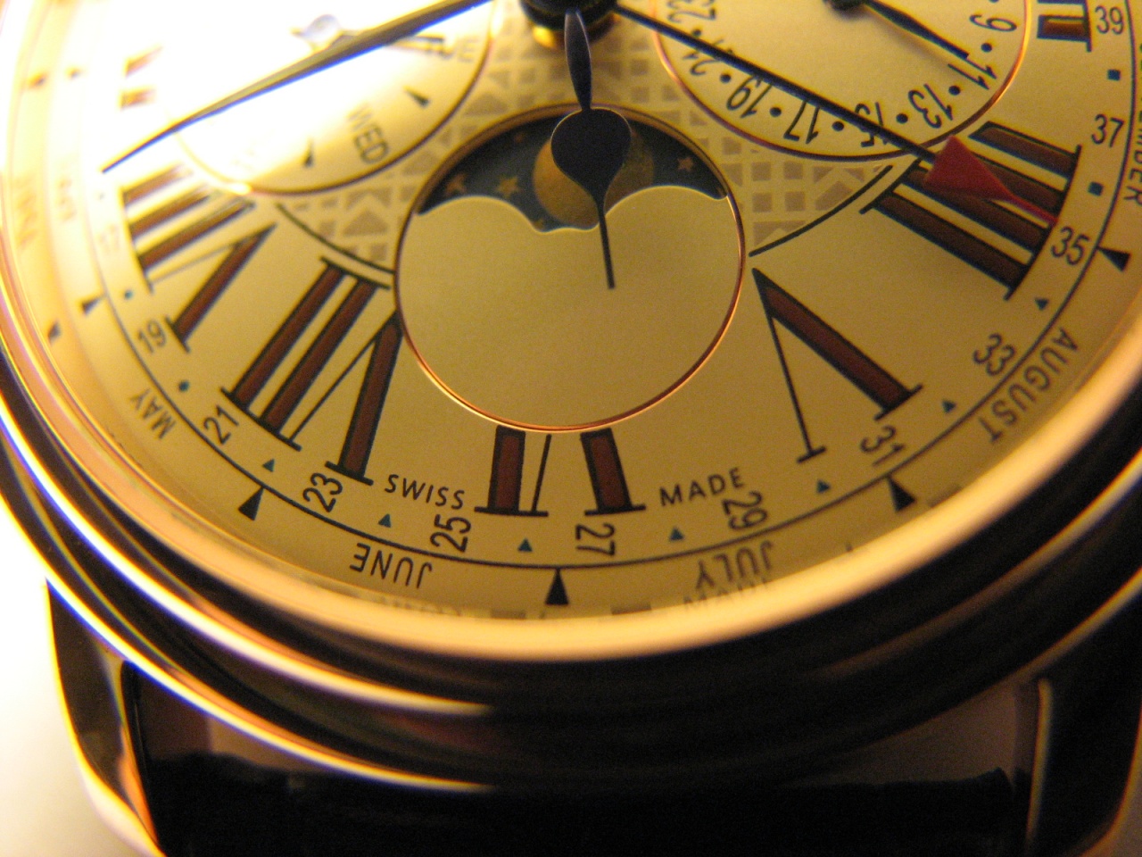 Очень красивые часы ! Сапфир, позолота. Дата, день недели, номер недели, месяц. Лунная фаза.