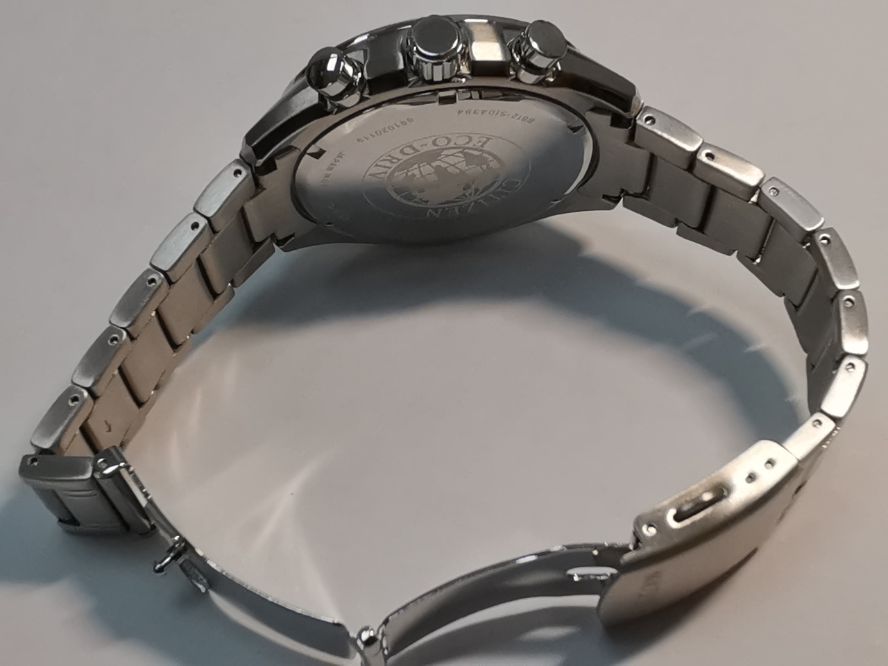 Модель Citizen B612-S104394 очень удачно учитывала все основные мои требования к часам, а именно: часы среднего размера, легко читаемый циферблат, питание от солнечной батарейки и водозащита 10 атмосфер.